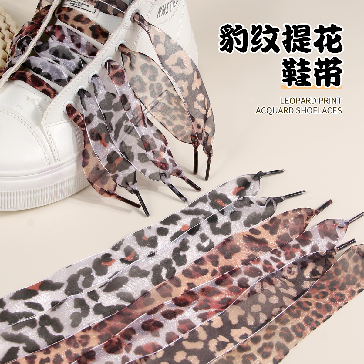 豹纹扁平宽豹纹雪纱鞋带2.5cm-4cm加宽雪纱鞋带豹纹图案鞋带