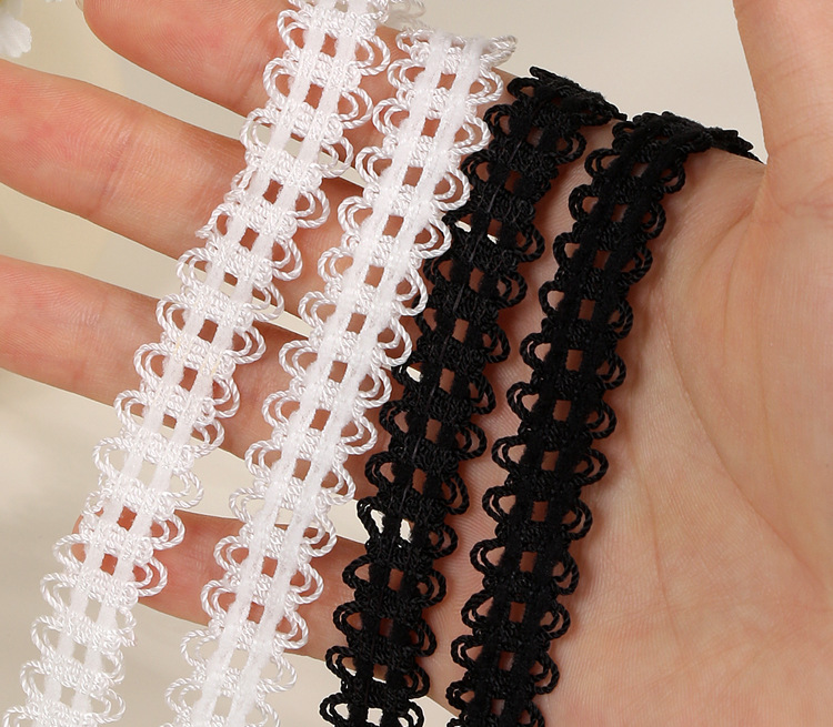 褶皱丝带2.5CM宽鱼尾褶皱荷叶边单层鞋带彩色黑白色波浪花边