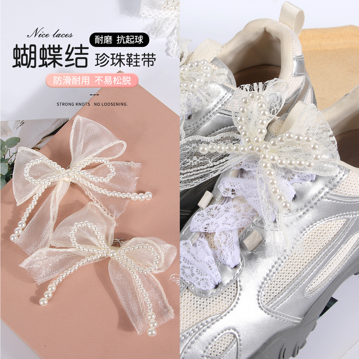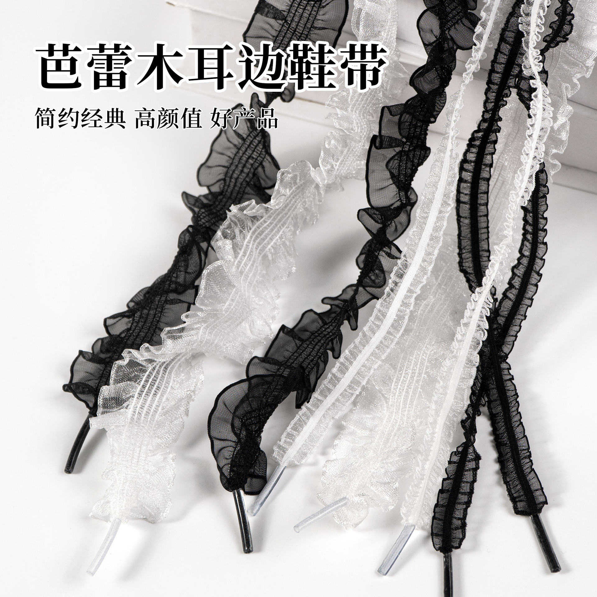 花边蕾丝木耳边鞋带芭蕾风蝴蝶结鞋绳适配德训鞋赛车鞋鞋带绳一双