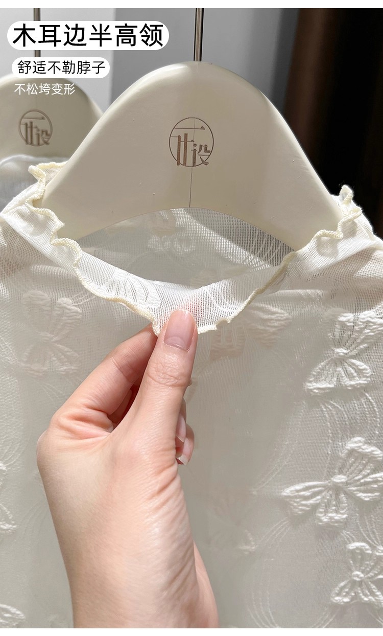 【大工厂】半高领网纱上衣木耳边蕾丝打底衫女秋冬叠穿内搭衫薄款