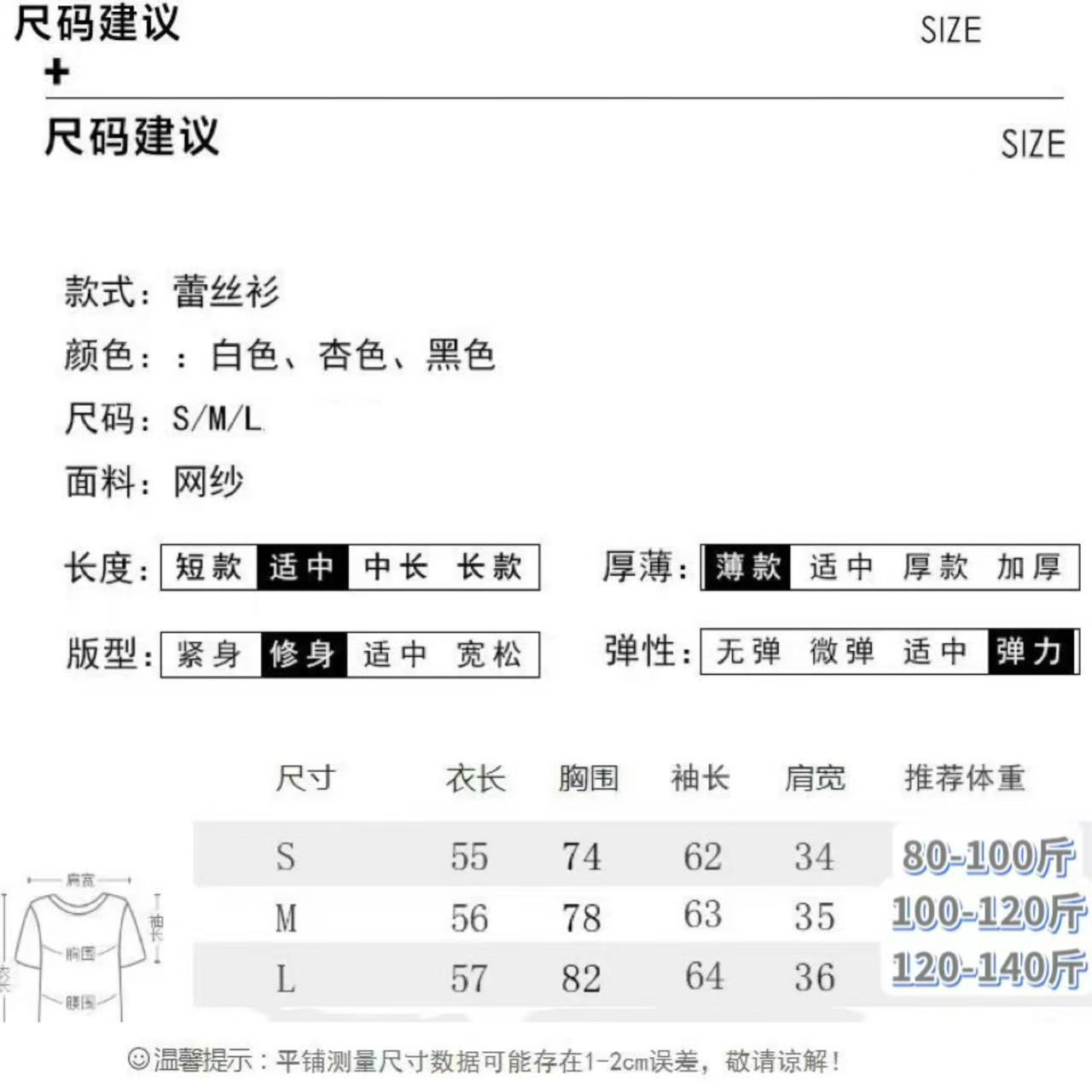 颜色 杏色/洋气减龄,黑色/魅力显瘦,白色/淑女优雅