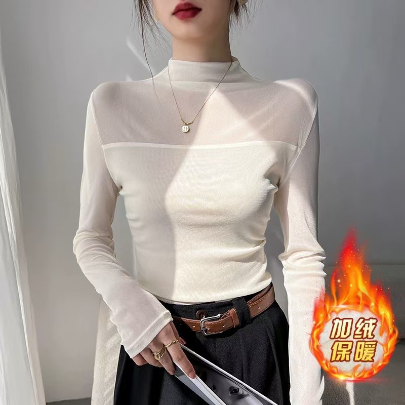 【アップグレードベルベット版】高級秋冬ファッション長袖tシャツ女性洋気ネット糸つなぎインナーシャツ