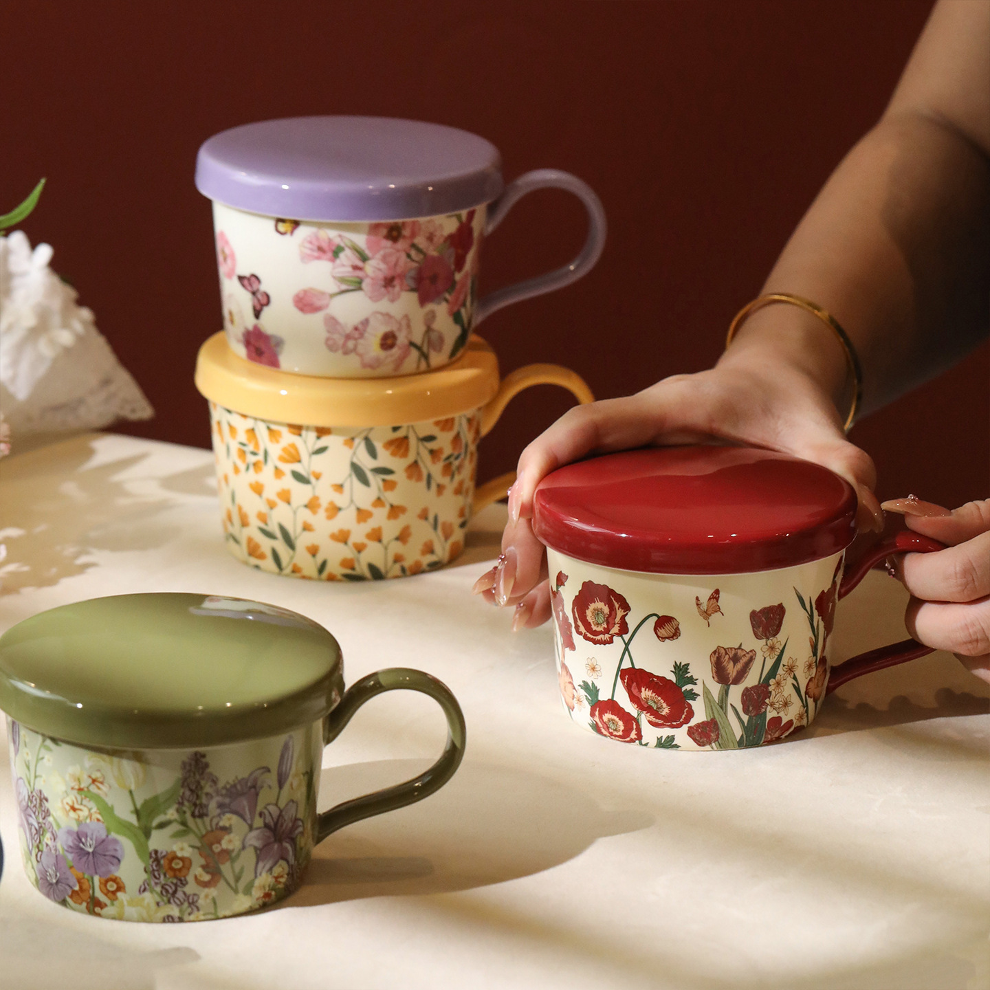 陶瓷杯高颜值家用喝水办公室带盖马克杯女生大容量生日礼物