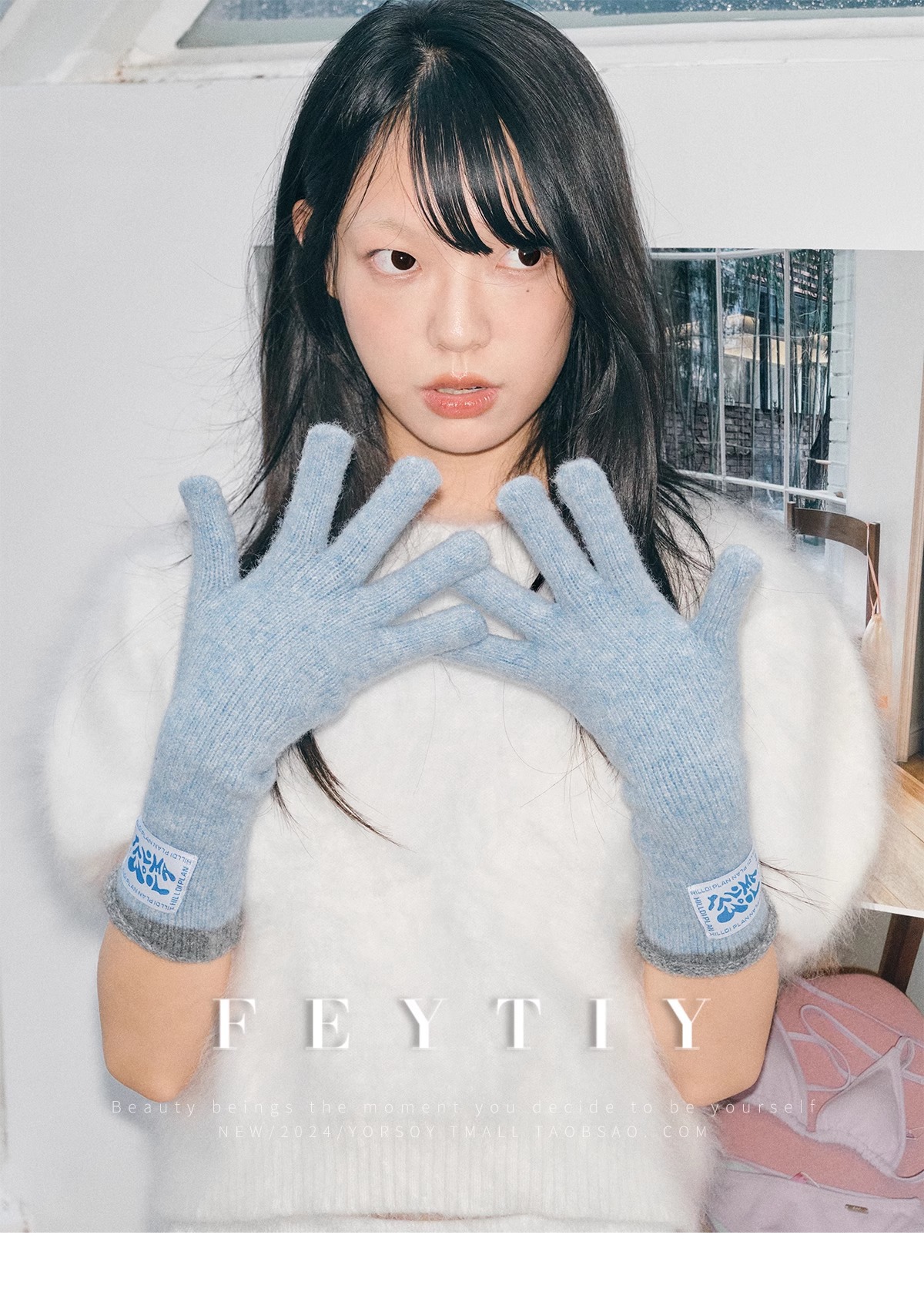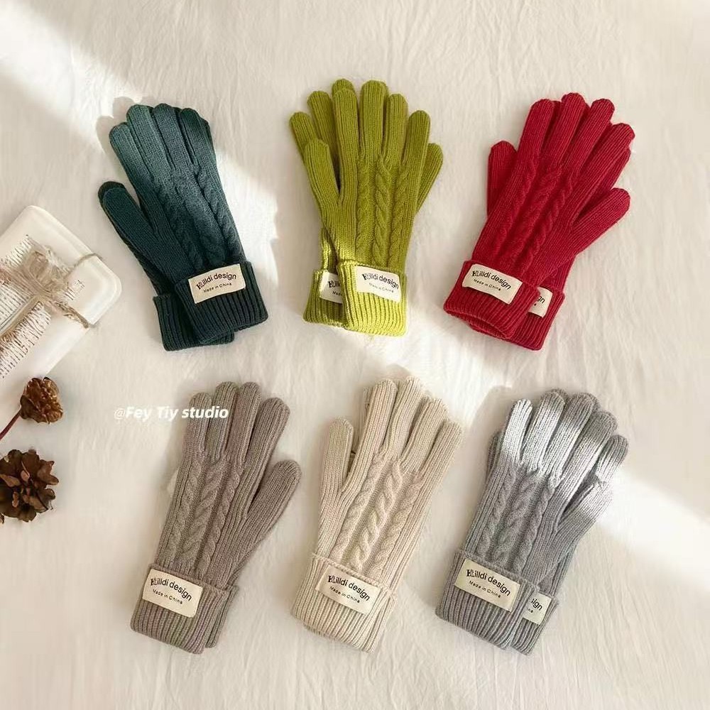 出口日韩2025冬季新款韩国贴标羊毛手套男女冬天防寒保暖骑行可触