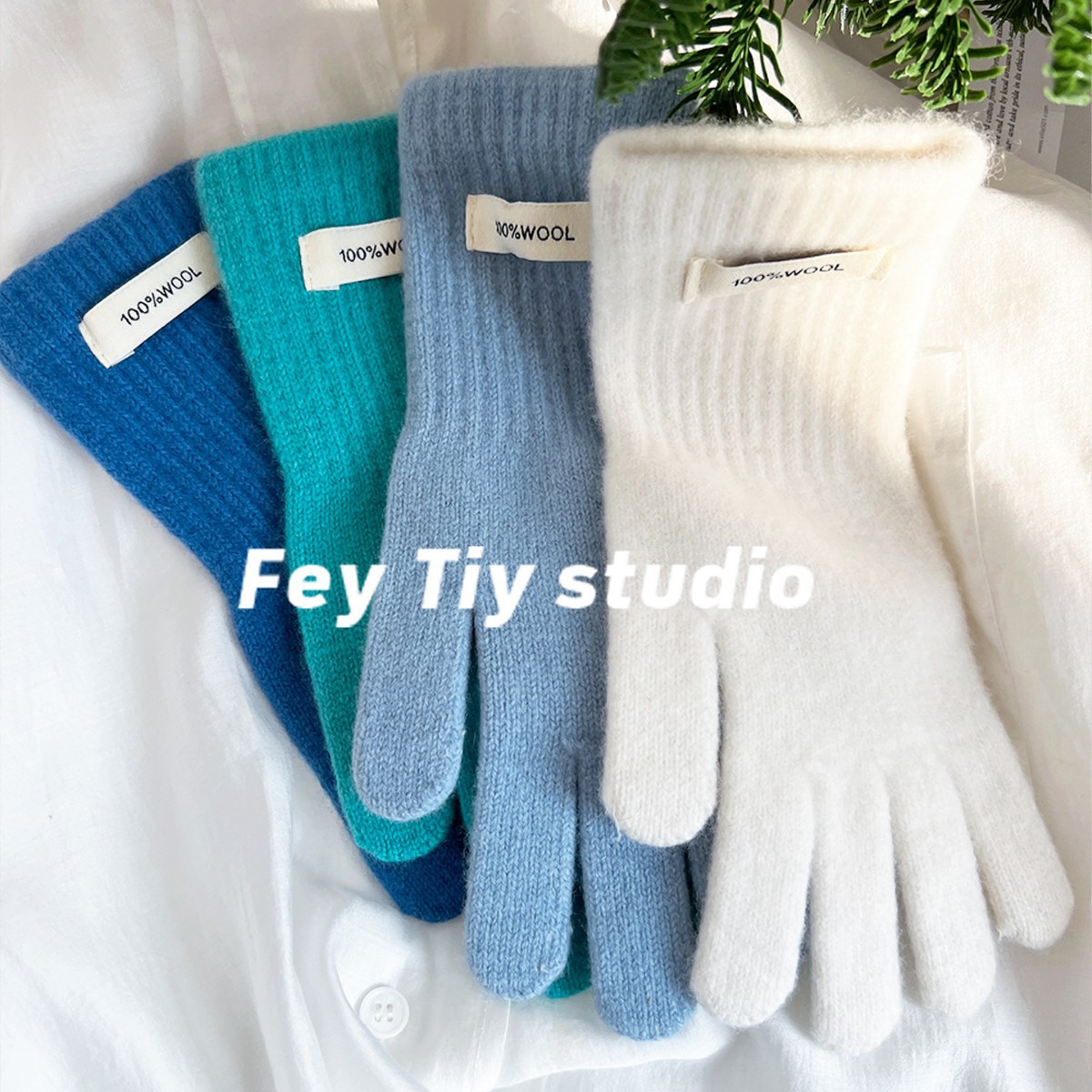 可爱羊毛卷~ins五指针织纯色羊毛软糯冬季保暖触屏韩国手套