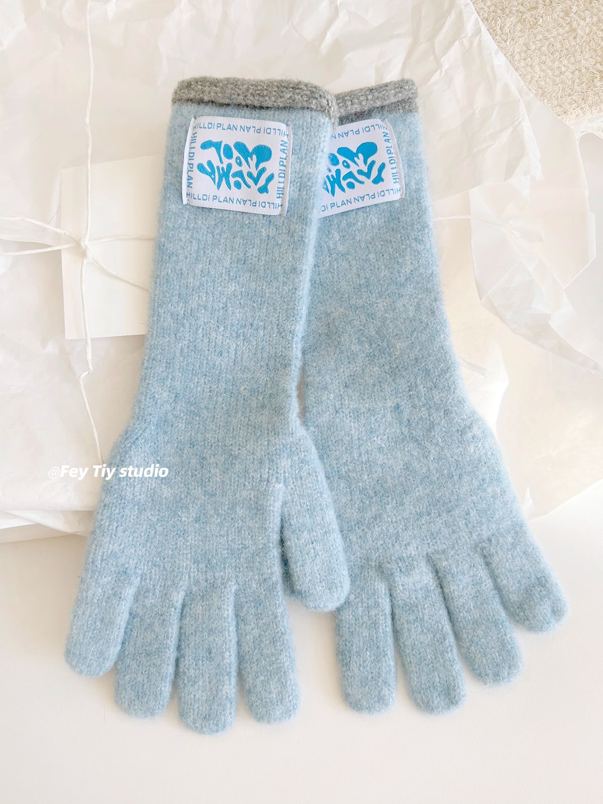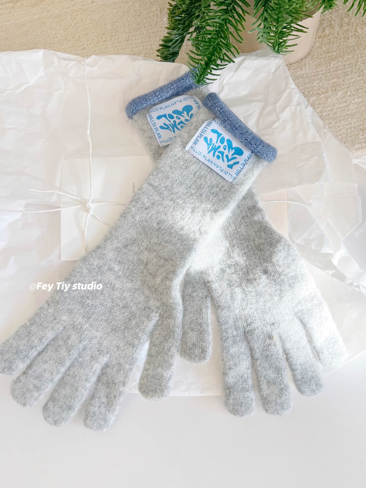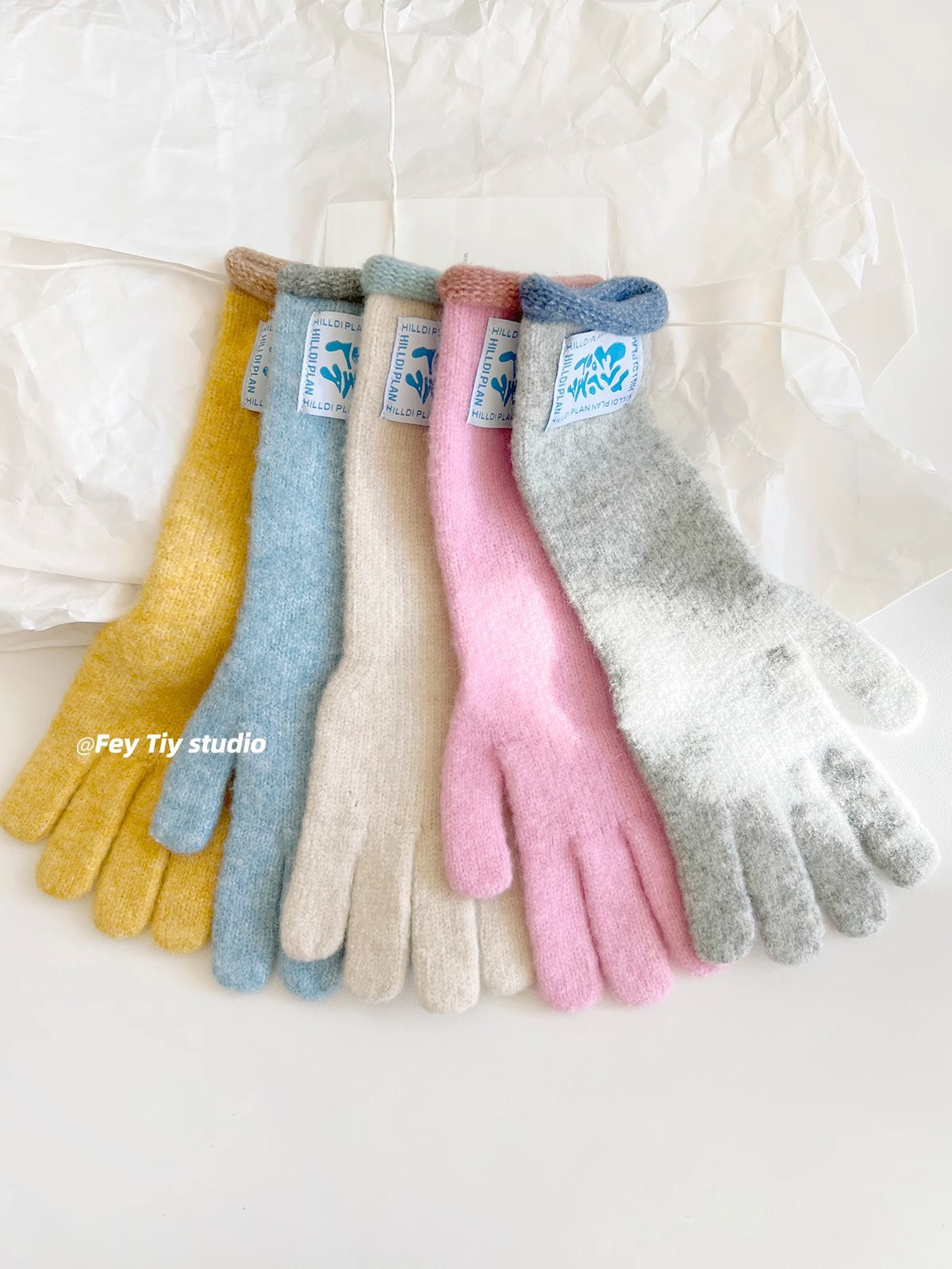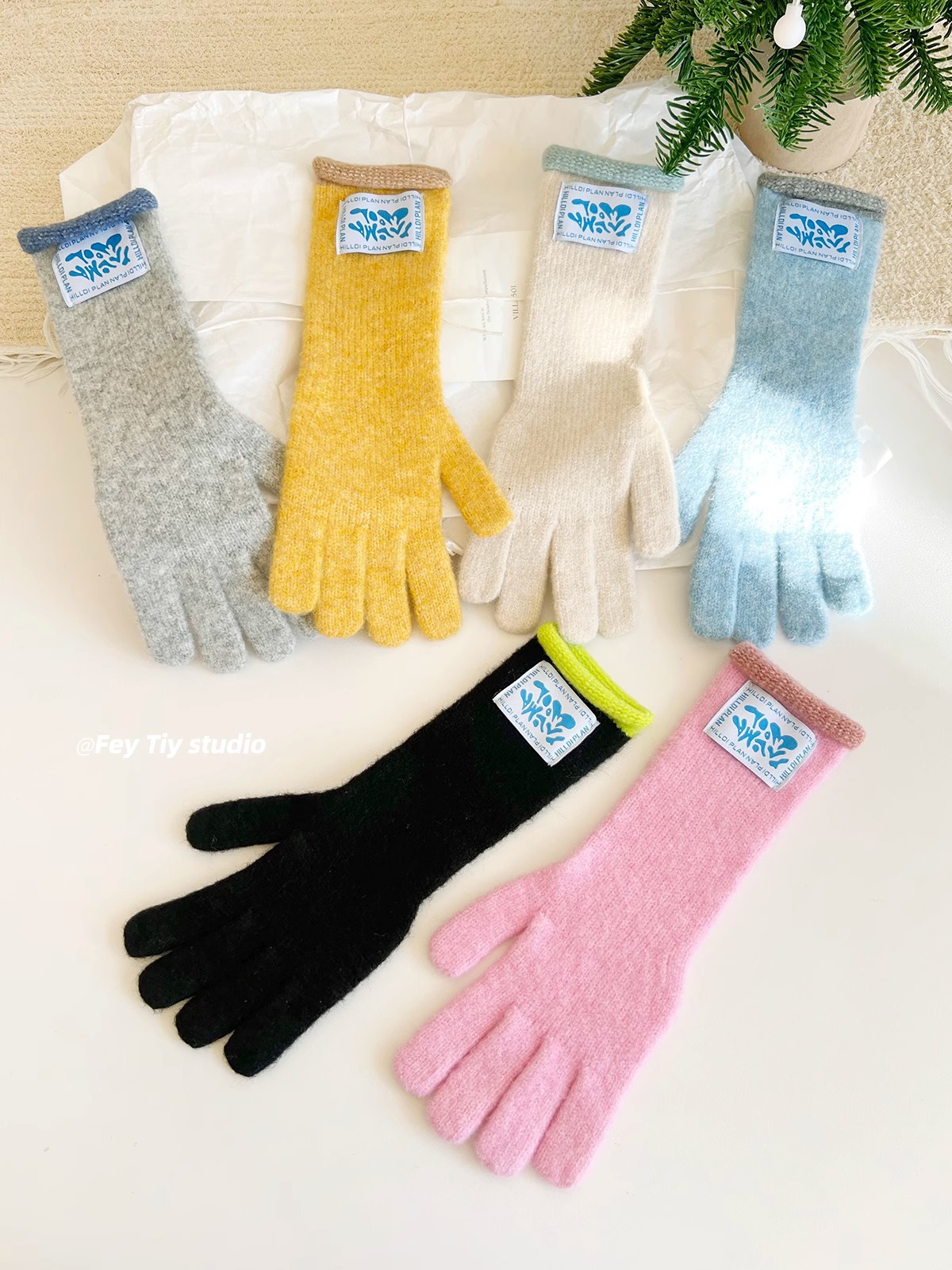 韩国订单含羊毛撞色加长手套秋冬保暖可爱可触屏百搭分指针织手套