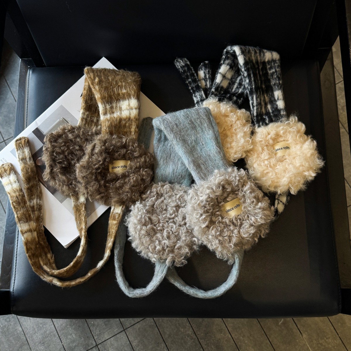 韩国单~2025新款ins风时尚小众羊羔毛保暖耳罩长款系带护耳帽子耳