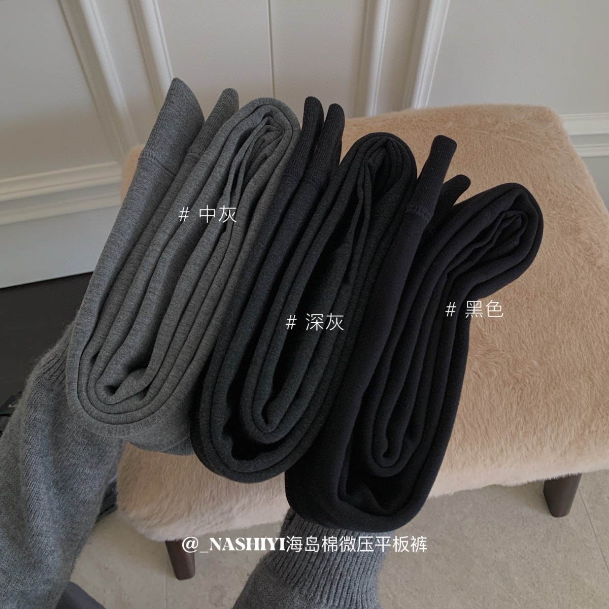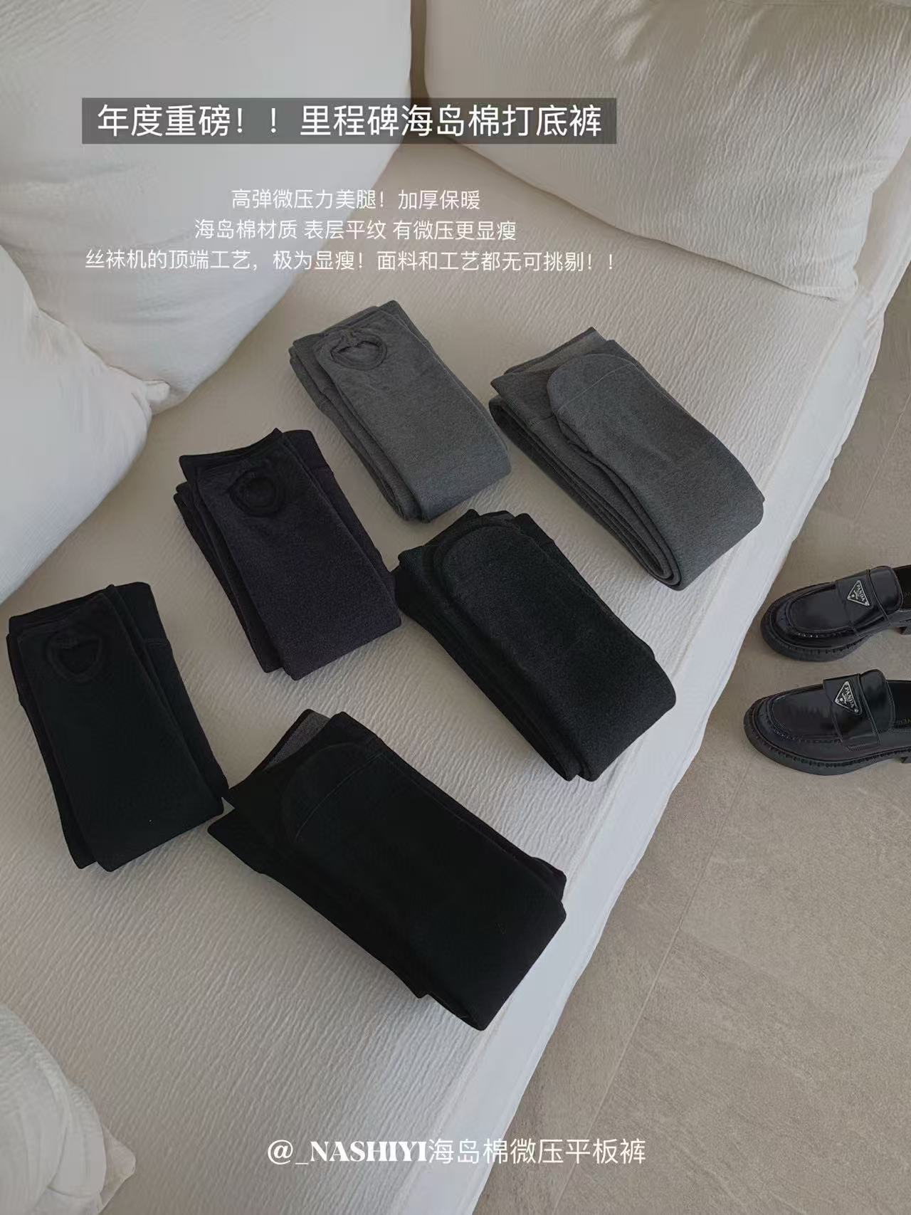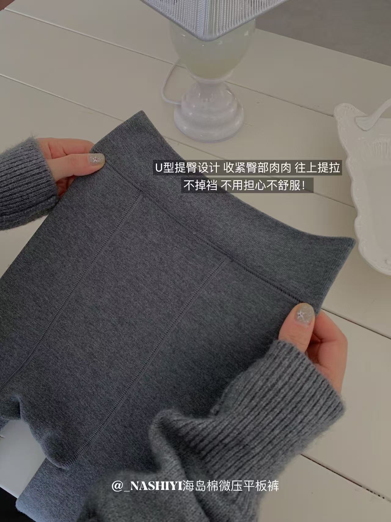 703#NASHIYI海岛棉微压平板裤高腰提臀收腹秋冬加绒抗寒打底袜裤