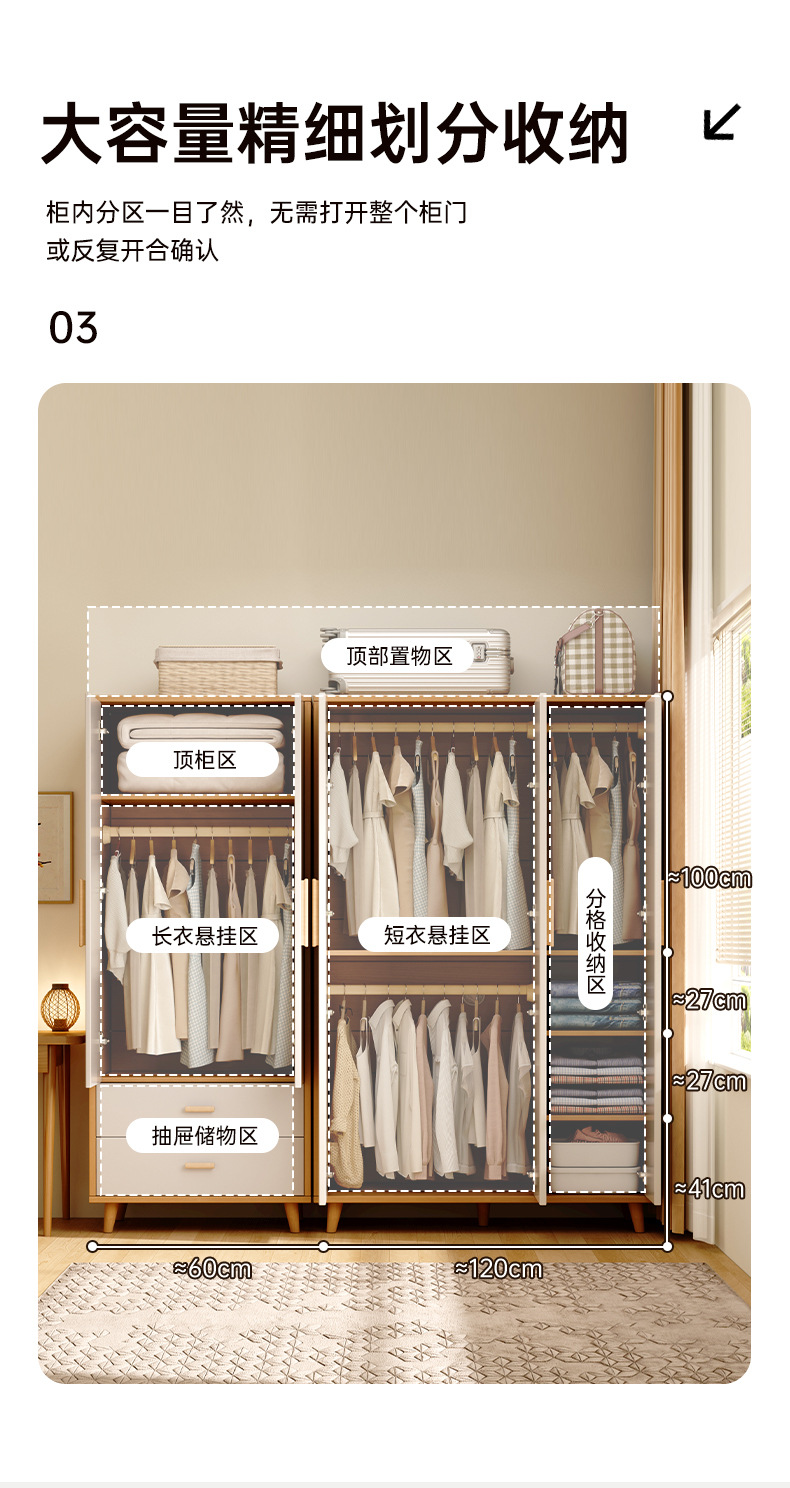 衣柜家用卧室2025新款简易衣橱柜子放衣服的置物柜防尘衣物收纳柜