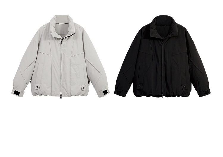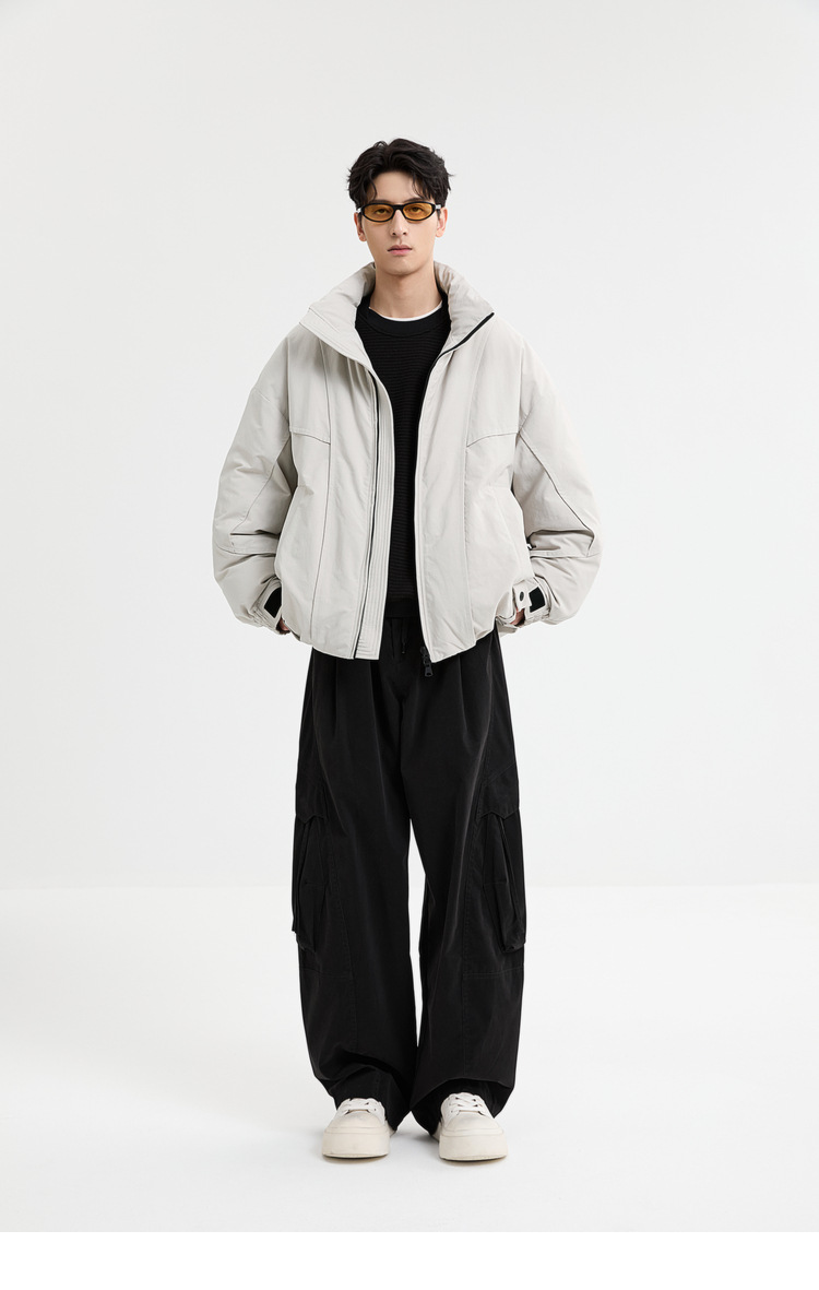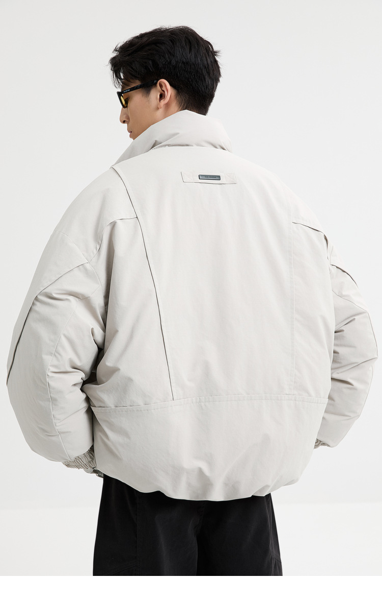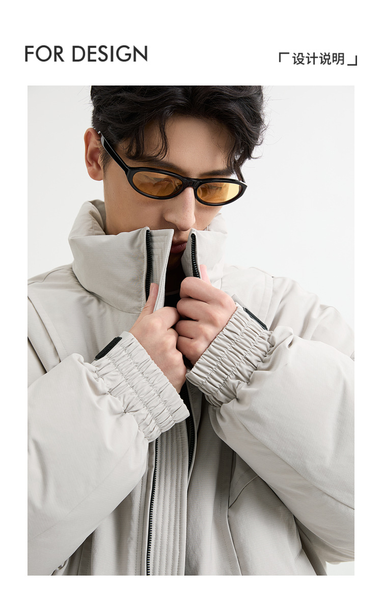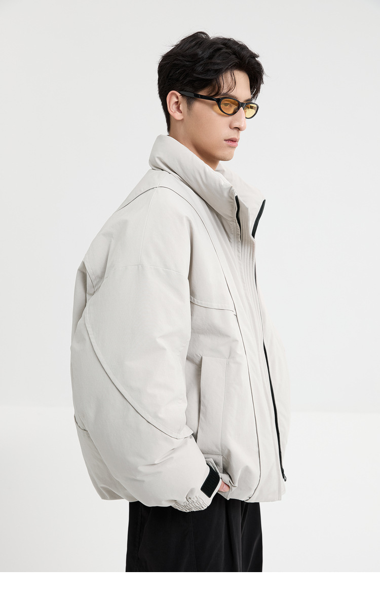 2025针织短款轻薄廓形松弛立领毛衣羽绒服男高级感灰色压印潮外套