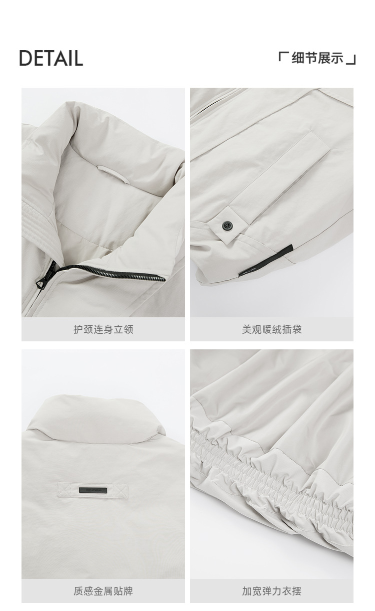 220g高充绒量90白鸭绒羽绒服男士短款立领宽松面包服2025新款