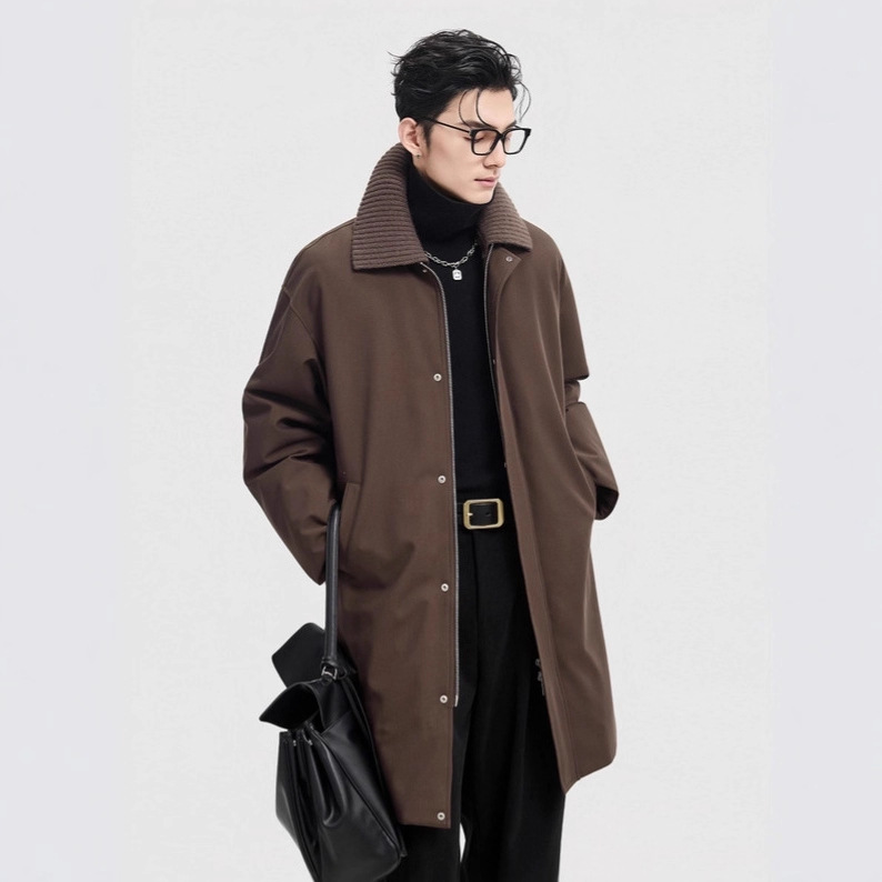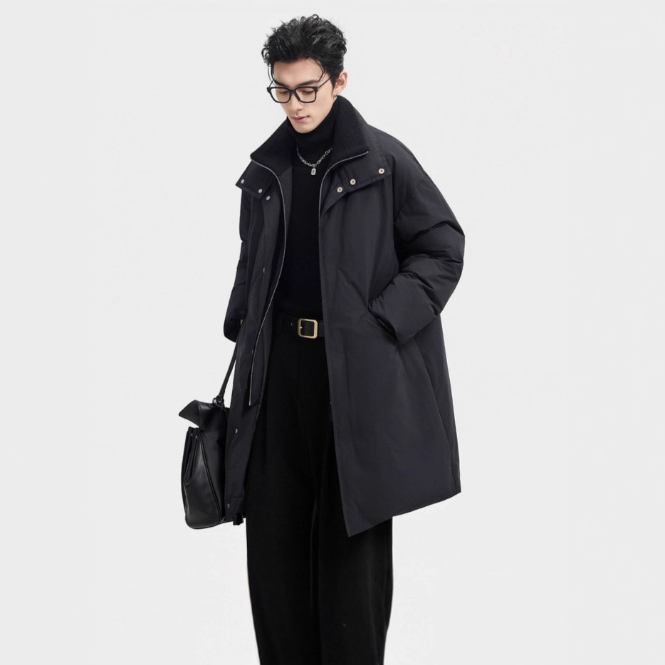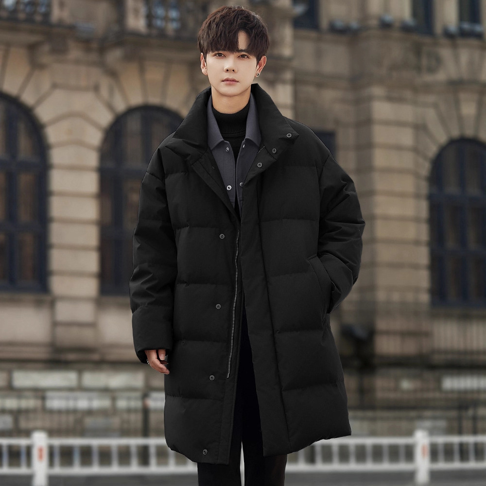 高級感が厚いダウンジャケット男性の中長タイプのビジネスカジュアル青年パーカー風衣冬コートコート