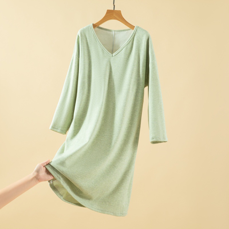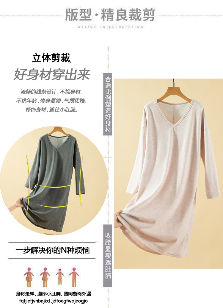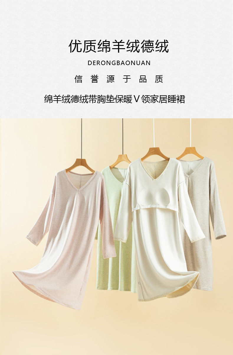 秋冬新款带胸垫V领睡裙长袖连衣裙德绒保暖宽松大码休闲家居服女