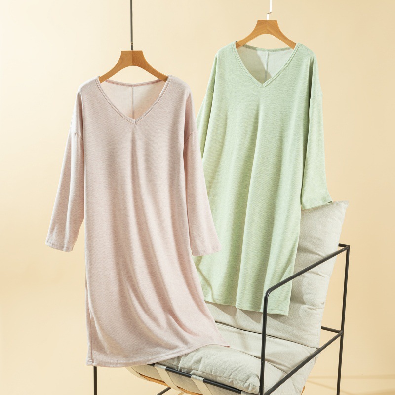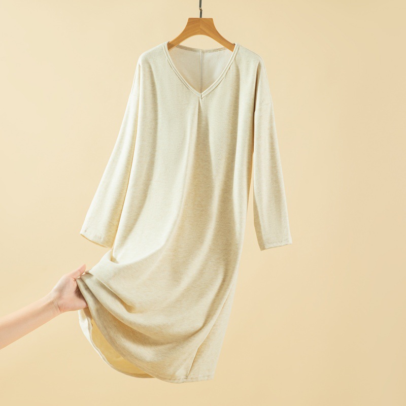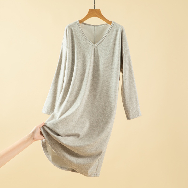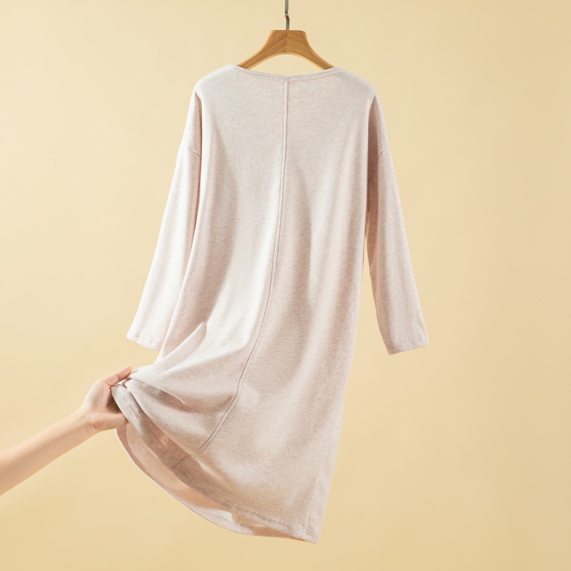 春と秋のナイトドレスレディースニットコットン長袖ワンピースパジャマ外に着ることができる高級感ゆったり大きいサイズロングスカートホームウェア