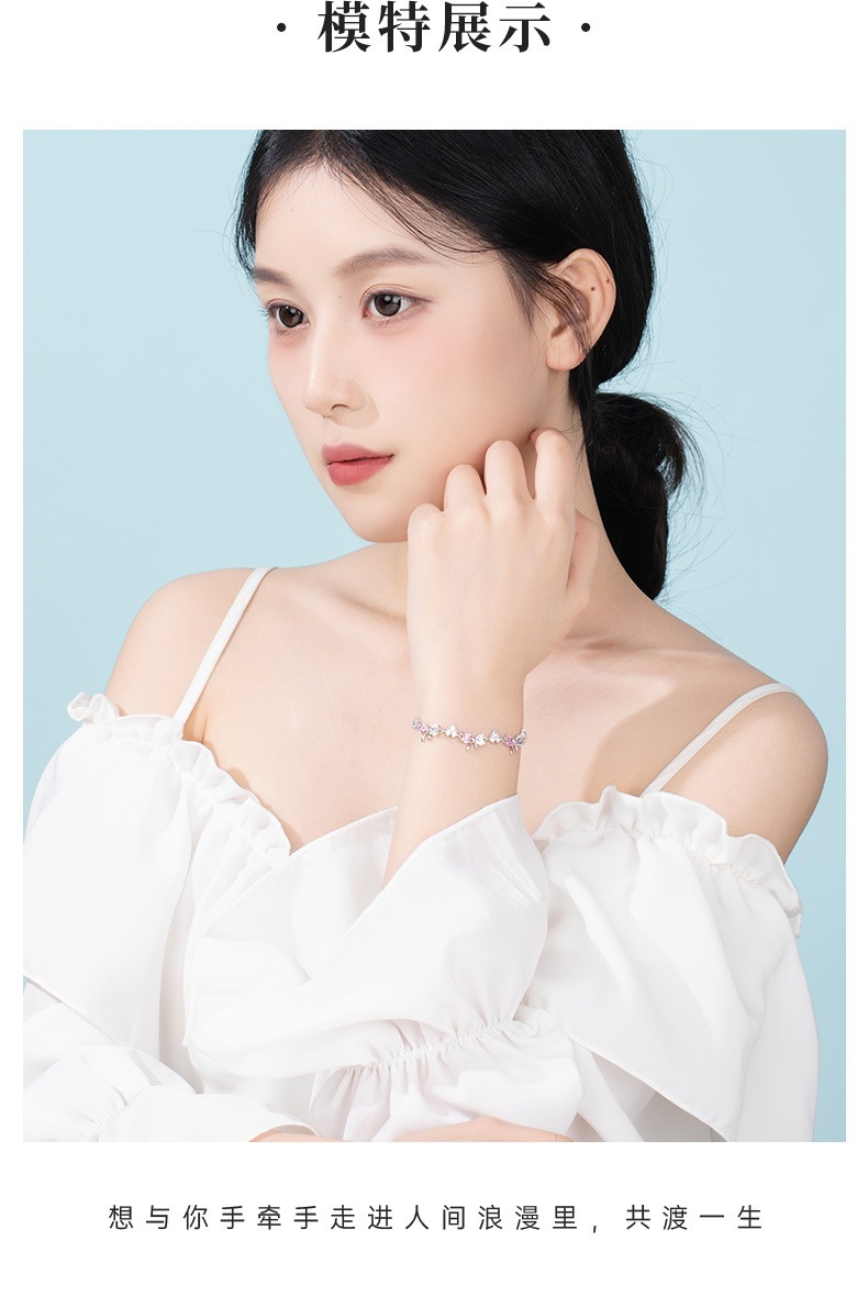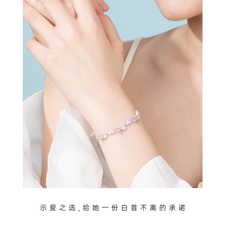宝山バオオリジナルデザイン925シルバーピンクフルダイヤモンド甘いちょう結び少女ハートブレスレットins軽くて豪華高級感