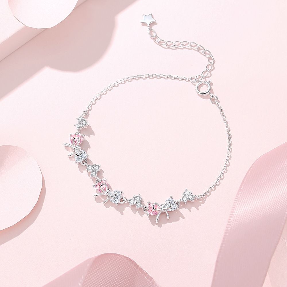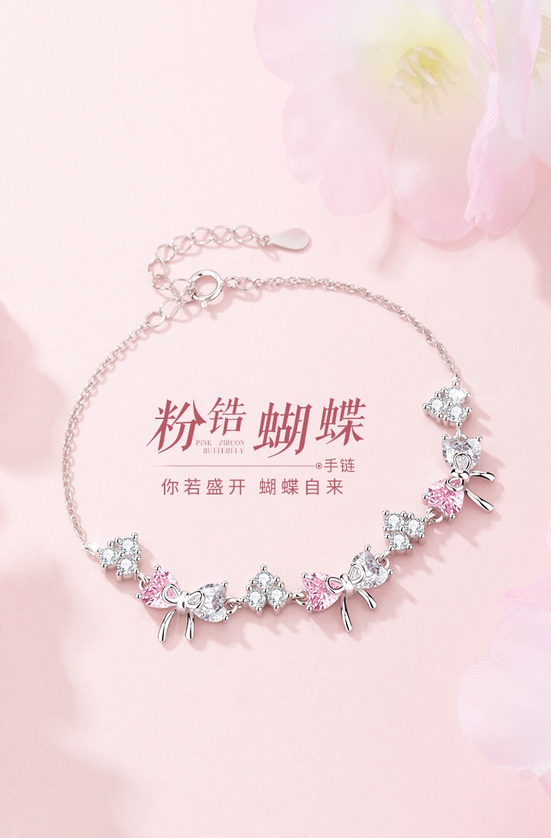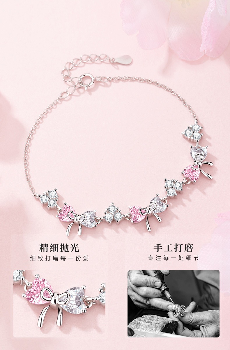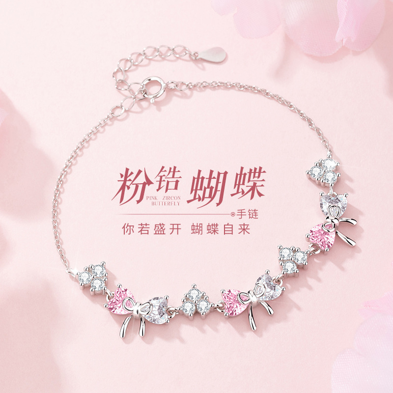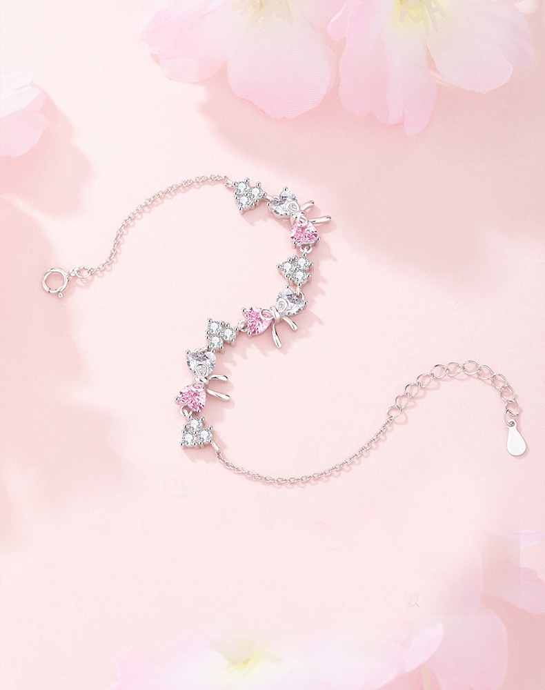 新款蝴蝶结爱心锆石可爱甜美手链女简约小红书潮流设计手饰直播
