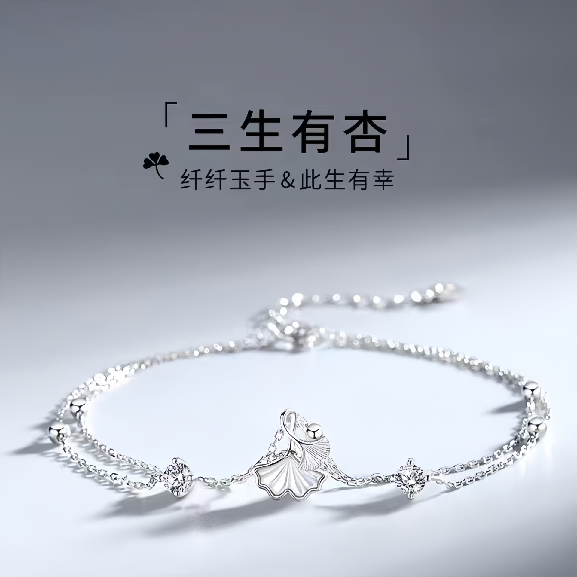 银杏叶手链女小清新轻奢双层设计高级感百搭手饰送闺蜜女朋友礼物