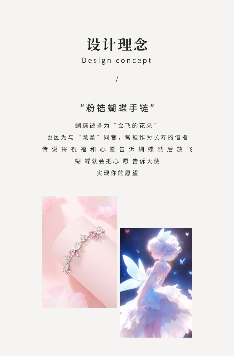 流光蝶梦夜光蝴蝶手链女生轻奢粉色系浪漫荧光手环情人节礼物