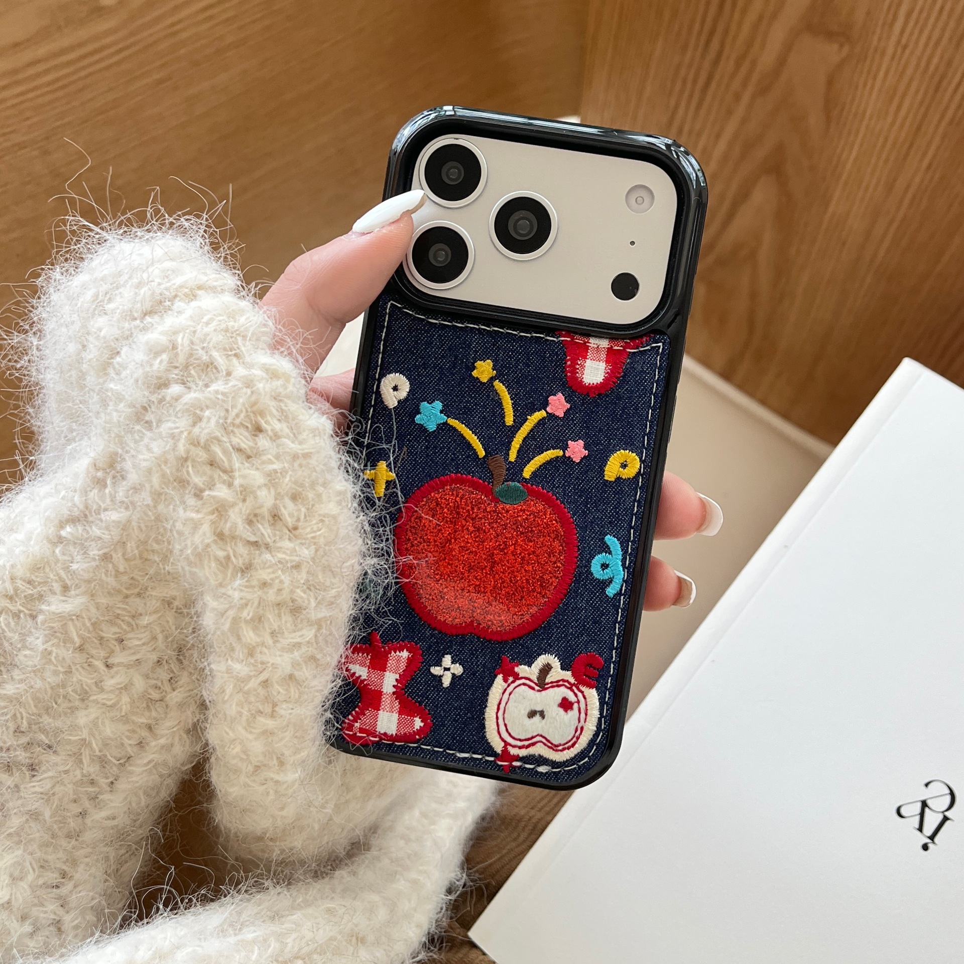 牛仔刺绣彩色星星红苹果iPhone17苹果16适用14/15pro max手机壳13