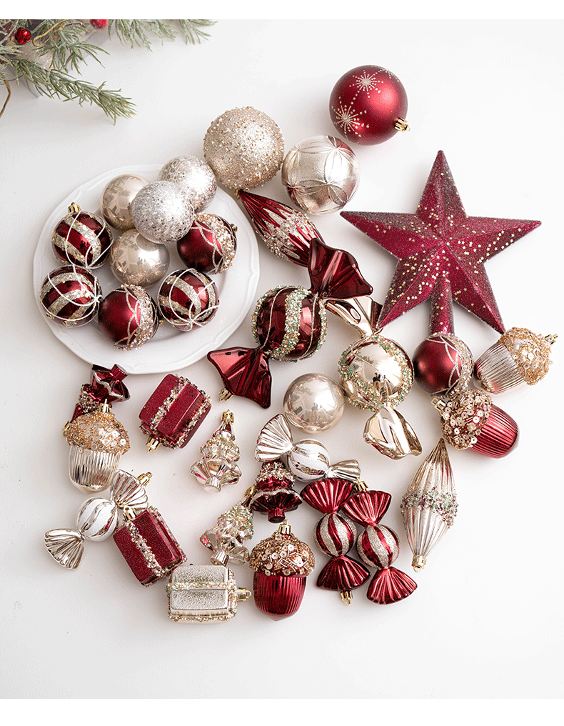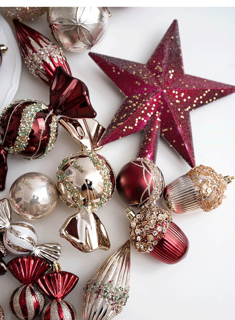 酒红色树顶星:包装尺寸20*2*20cm 箱规62*42*47cm 装箱数90pcs