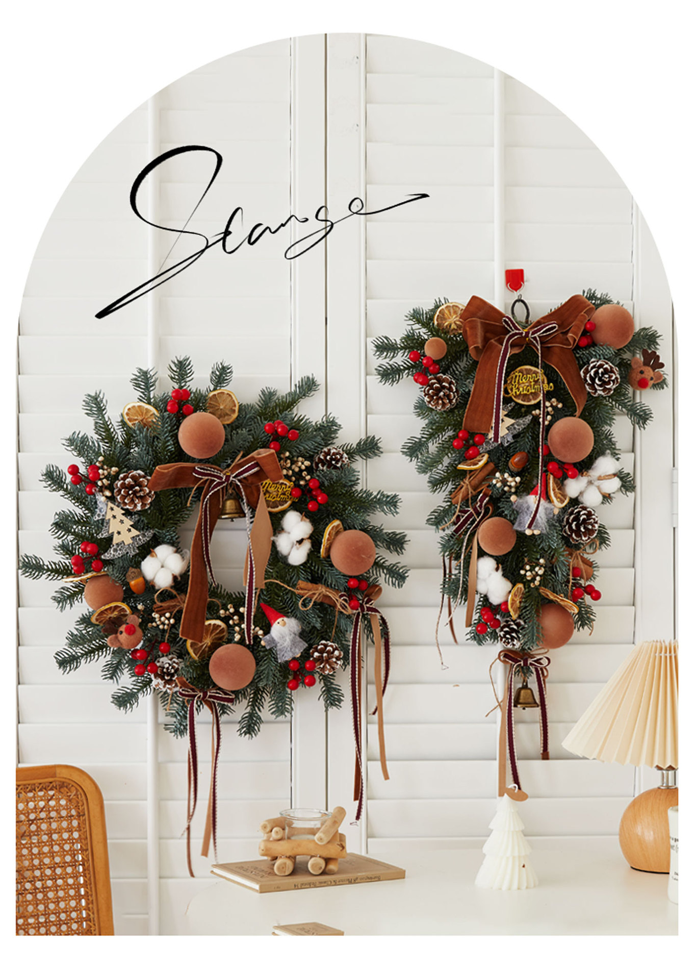 2025新款客厅圣诞节装饰花环门挂礼物墙面场景装饰布置圣诞花环