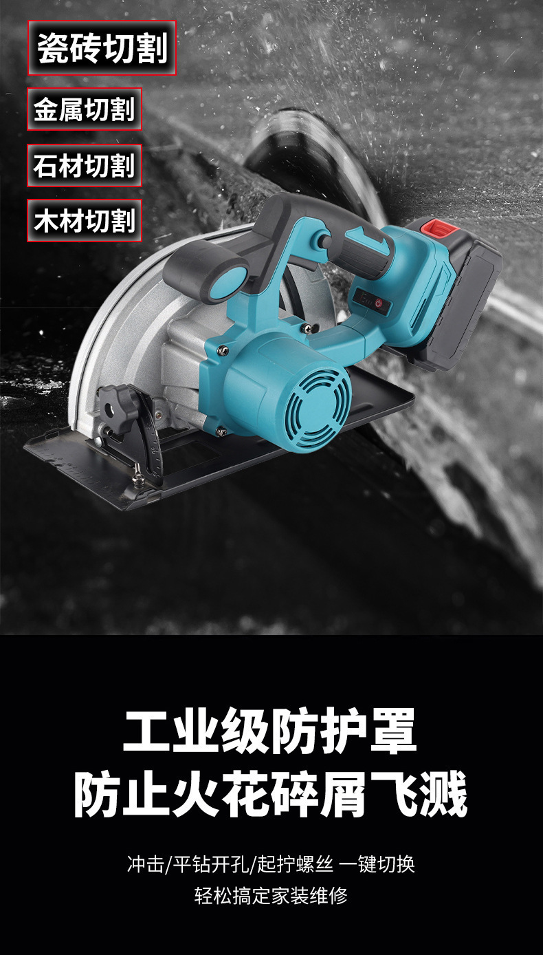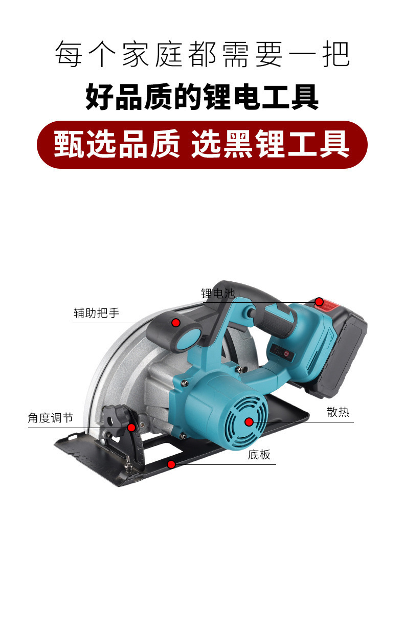 跨境7寸多功能电圆锯大功率木材切割机便携式木工无刷锂电手提锯