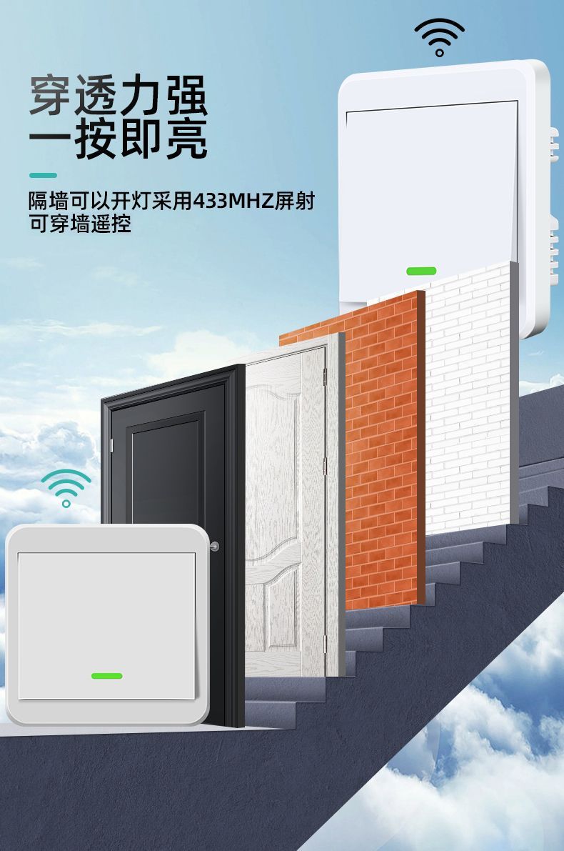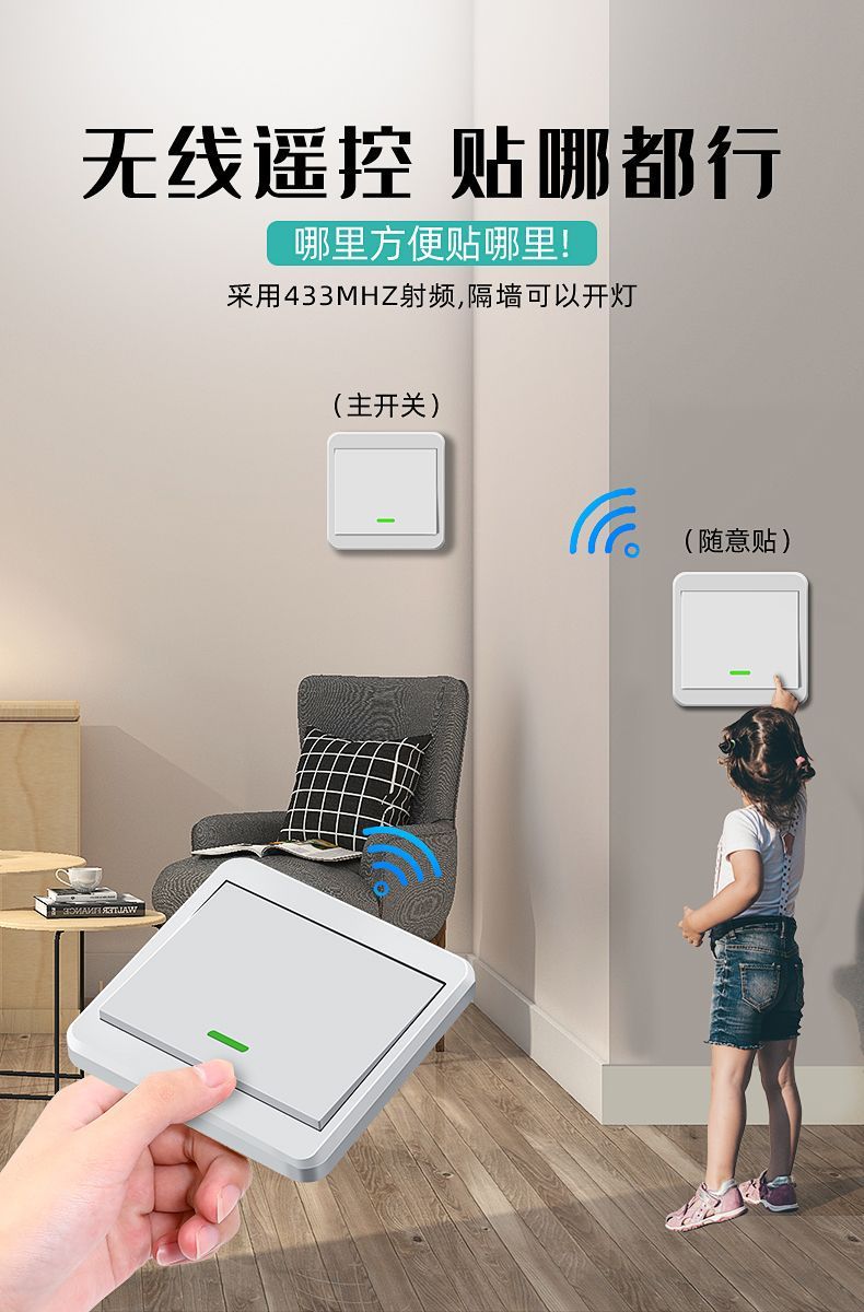 电灯子母遥控开关无线随意贴双控懒人家用220V灯卧室床头智能开关