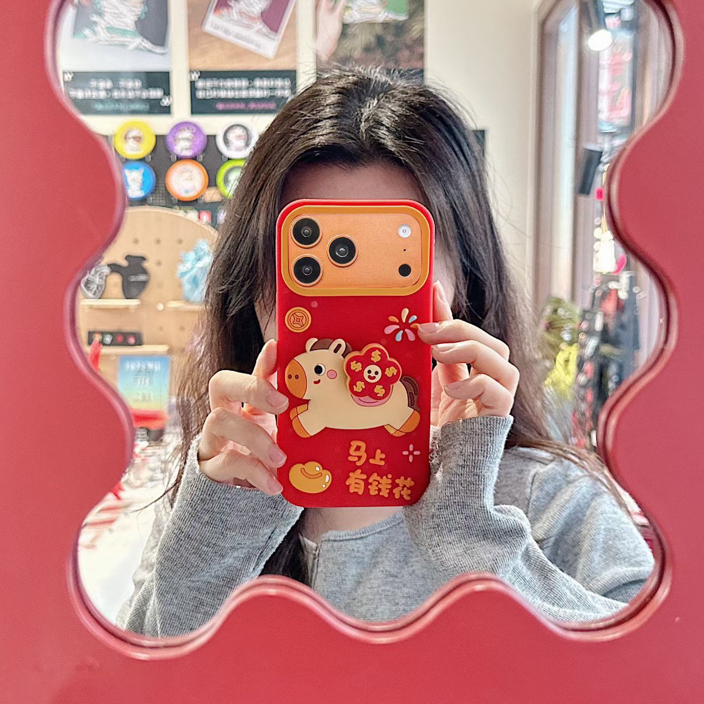喜庆旋转花朵马上有钱花iphone17苹果16适用14/15pro max手机壳