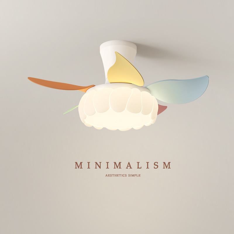 卧室风扇灯超静音护眼儿童房简约奶油风主卧室一体隐形吊扇灯跨境