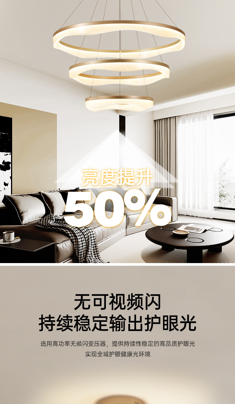 客厅吊灯树脂全铜大气高端大厅主灯轻奢高级感圈圈餐厅灯中山灯具
