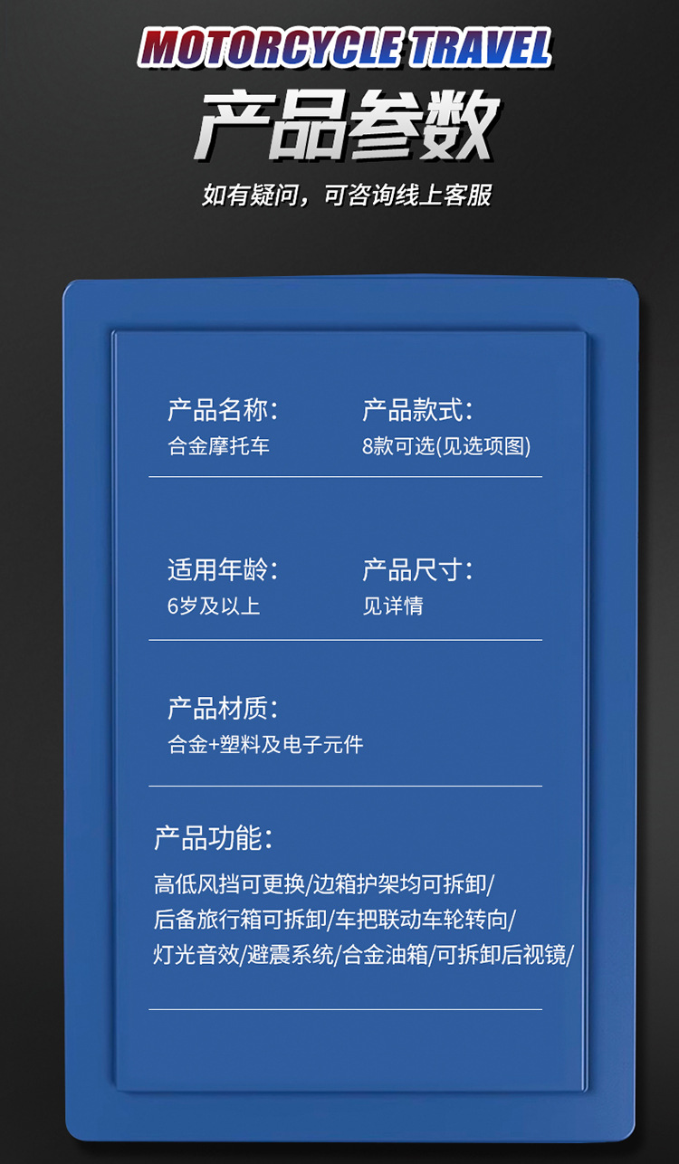 【商品名称】摩洛斯1:10宝玛水鸟摩托车