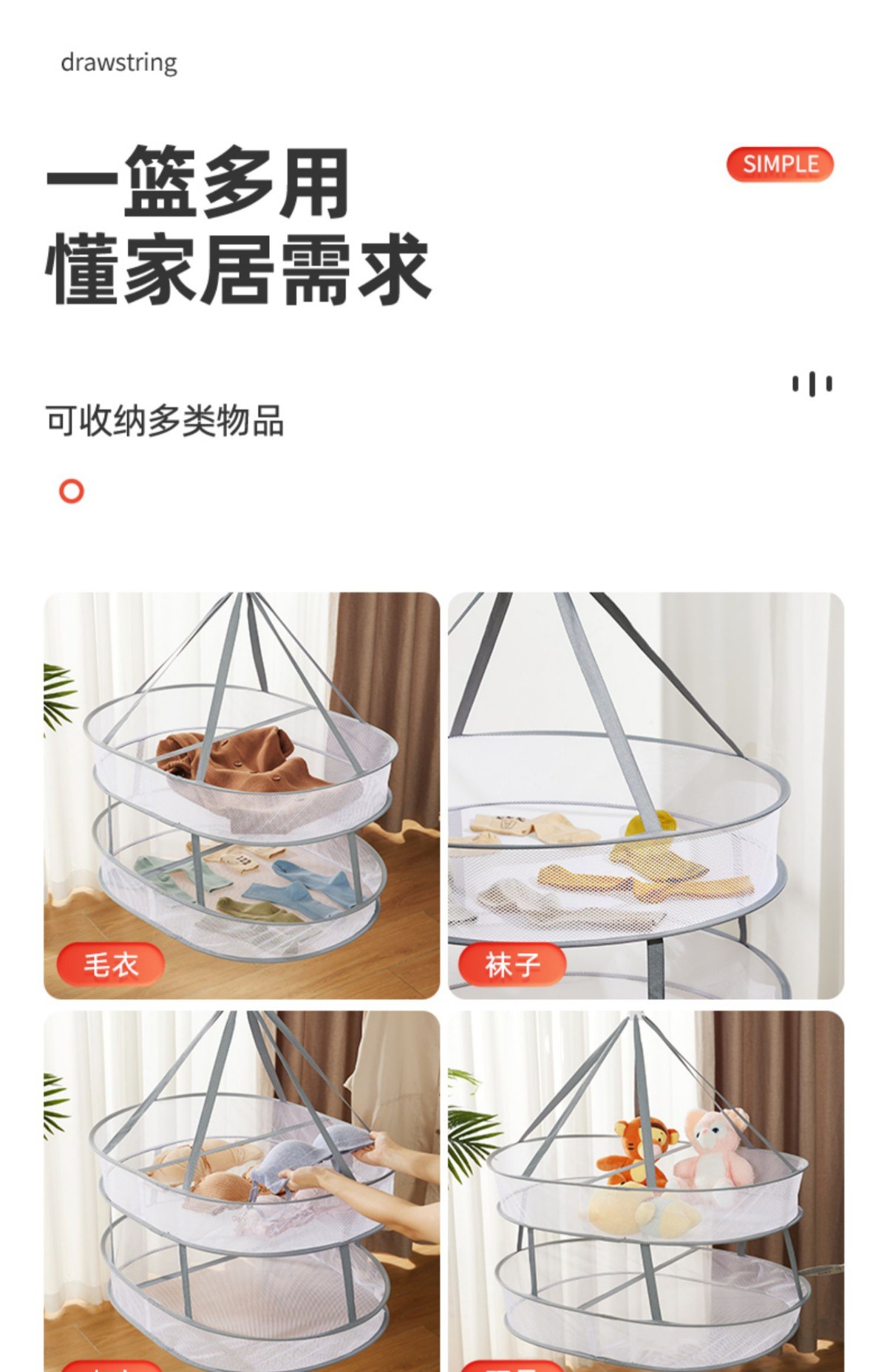 CH物干しかご 家庭用ベランダ物干し靴下乾燥神器 平置き下着衣類ネットバッグ 多層折りたたみ式乾燥かご