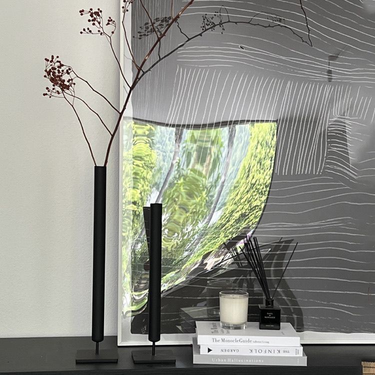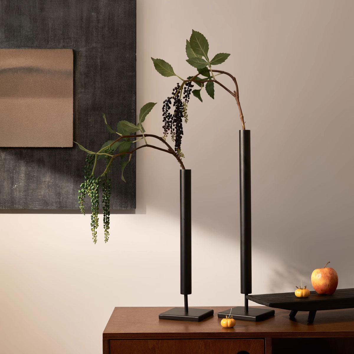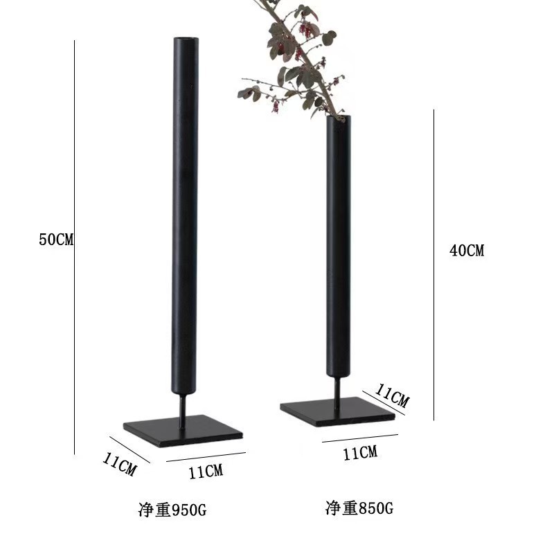 简约现代花瓶侘寂风百搭黑色摆件客厅玄关铁艺花器桌面插花