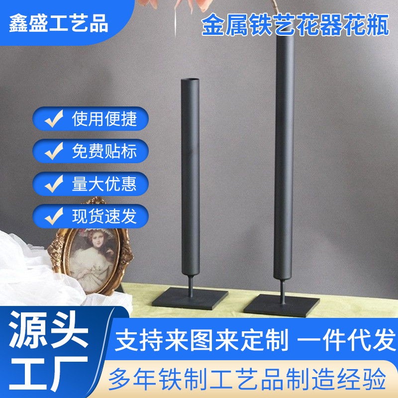 跨境简约现代风摆件客厅室内金属铁艺花器花瓶桌面插花软装饰品