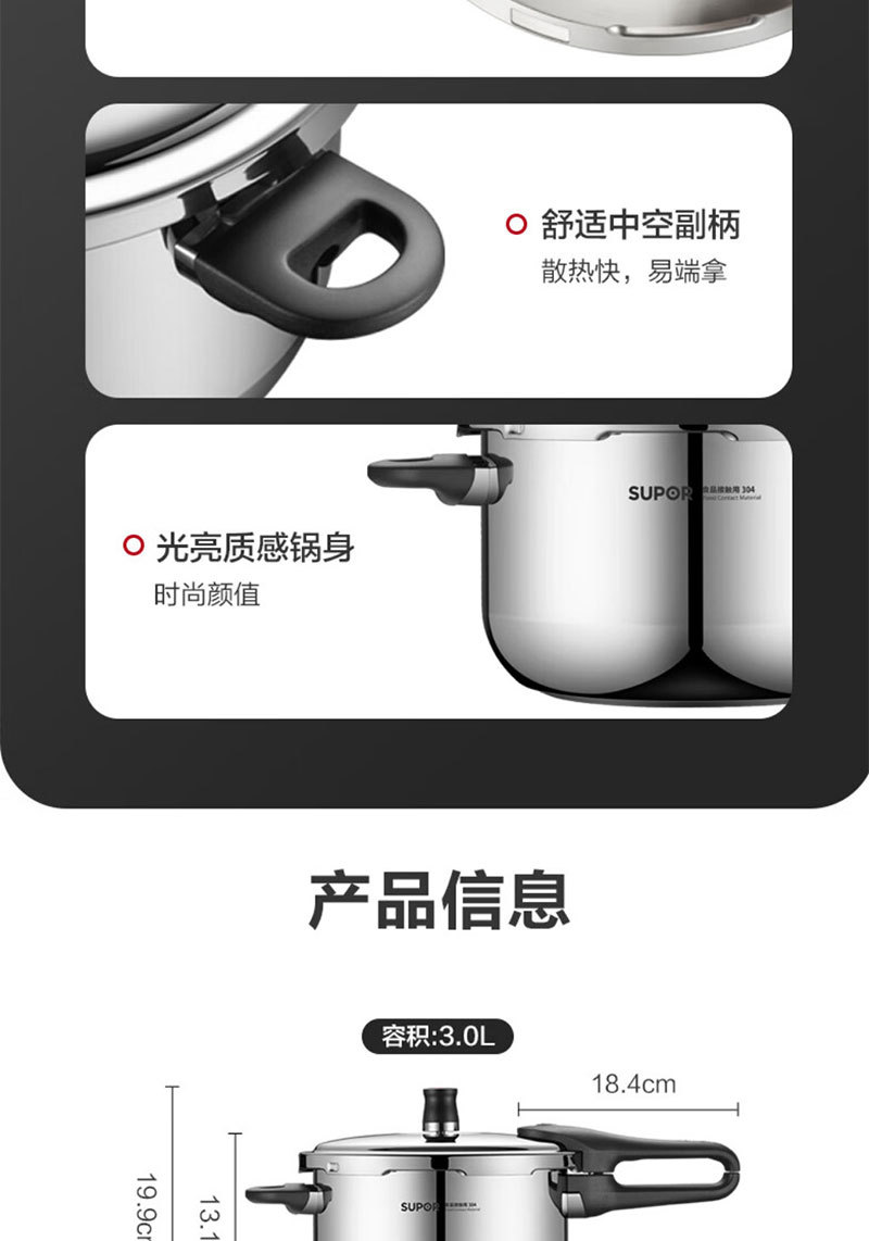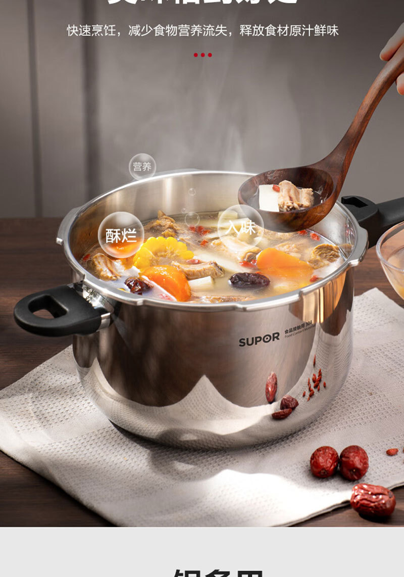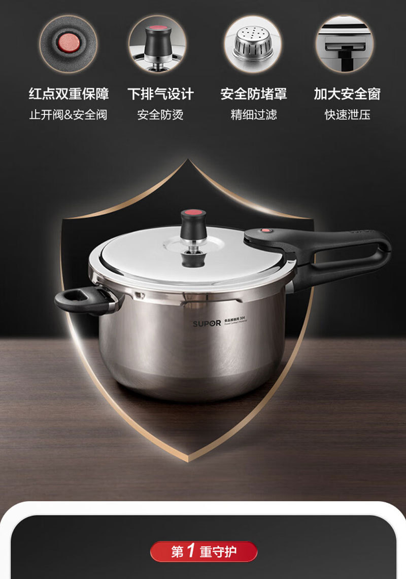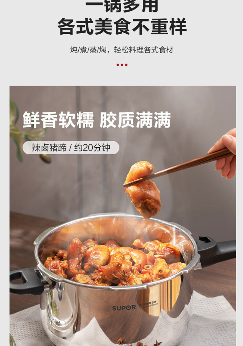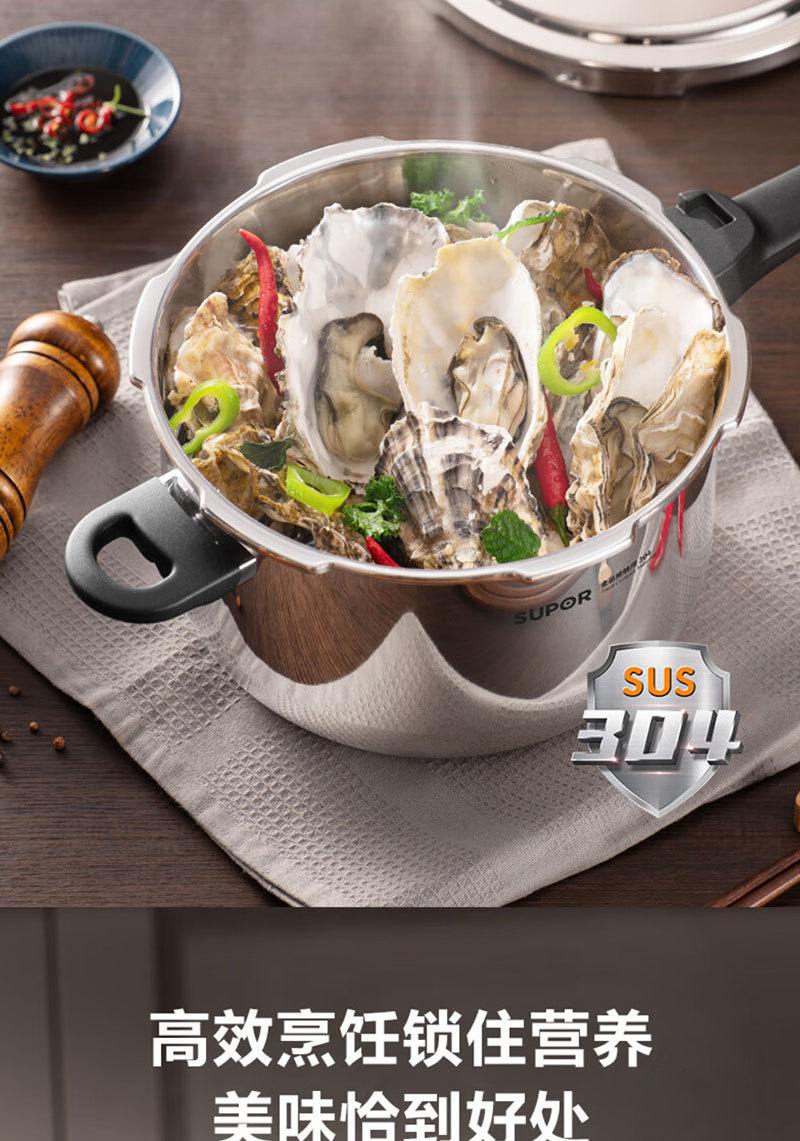 苏泊尔压力锅304不锈钢家用燃气电磁炉通用加厚安全防爆高压锅