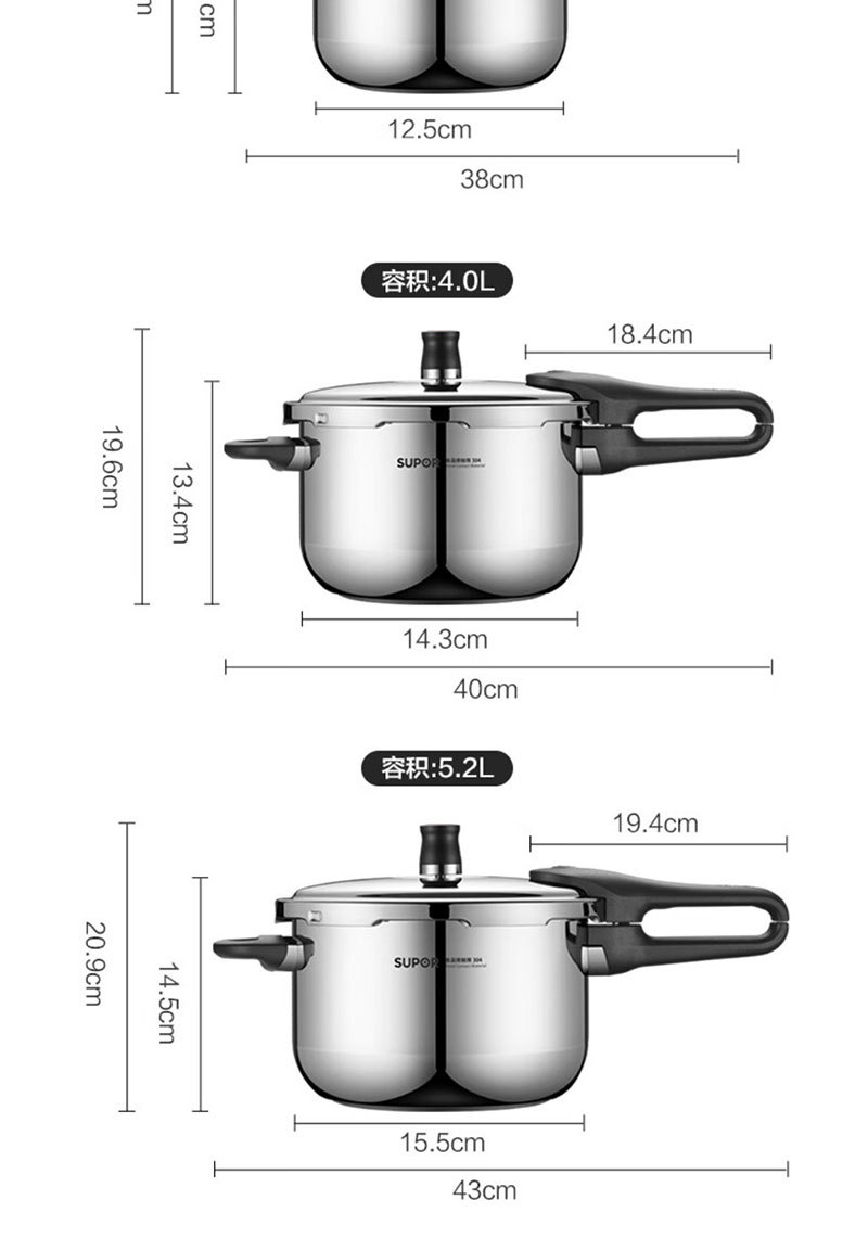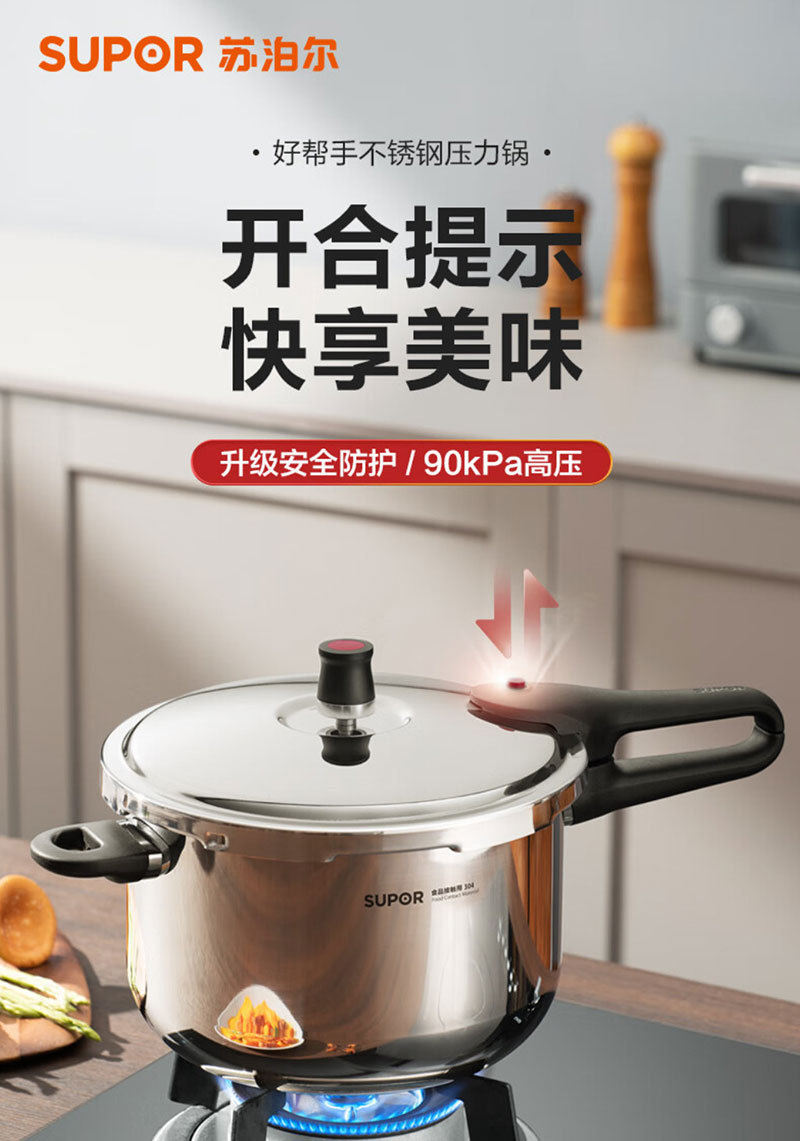 Supor 304 ステンレス鋼圧力鍋 Yueti 家庭用ガス電磁調理器ユニバーサル YW223BA2/BB2/EY22