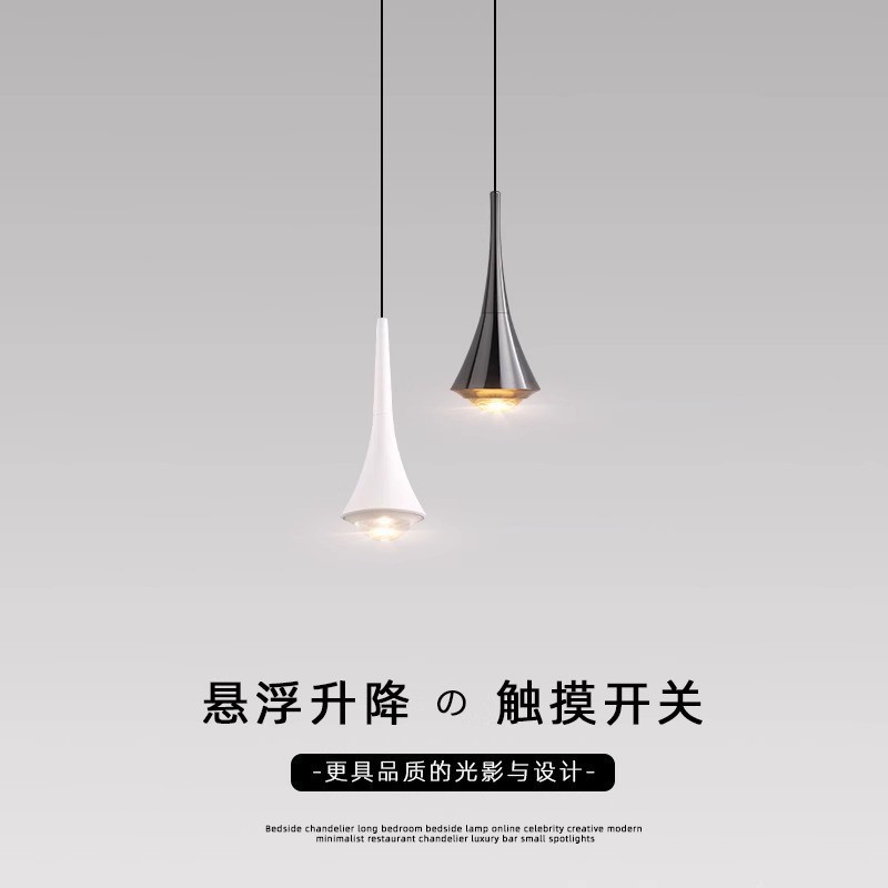クロスボーダータッチリフト式寝室ベッドサイドシャンデリア、シンプルなリビングルームとダイニングルームの背景壁用ロングライン小型マスターベッドルームリフトモデル