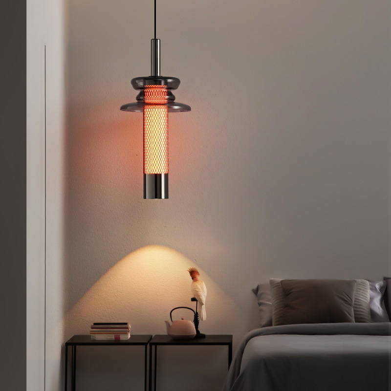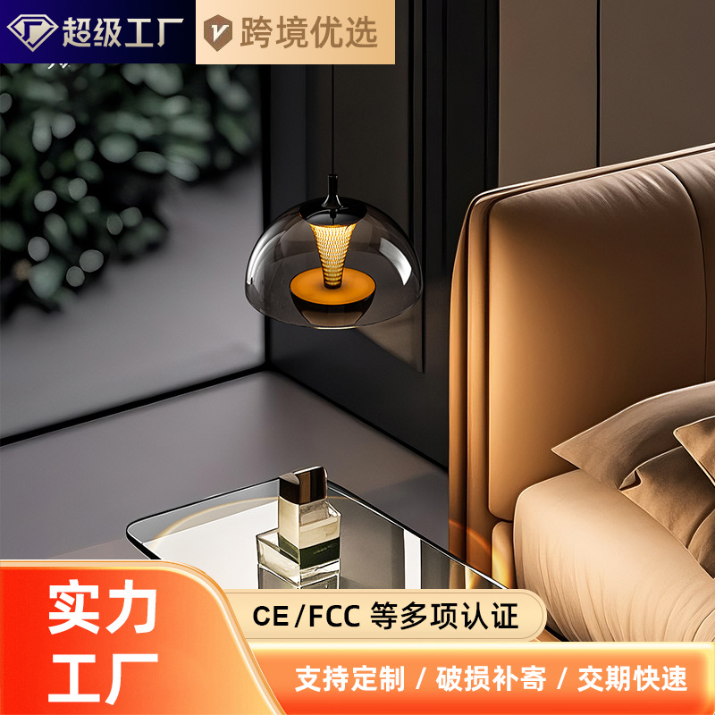 卧室床头吊灯可升降玻璃轻奢高级感酒店民宿氛围背景墙装饰吊线灯
