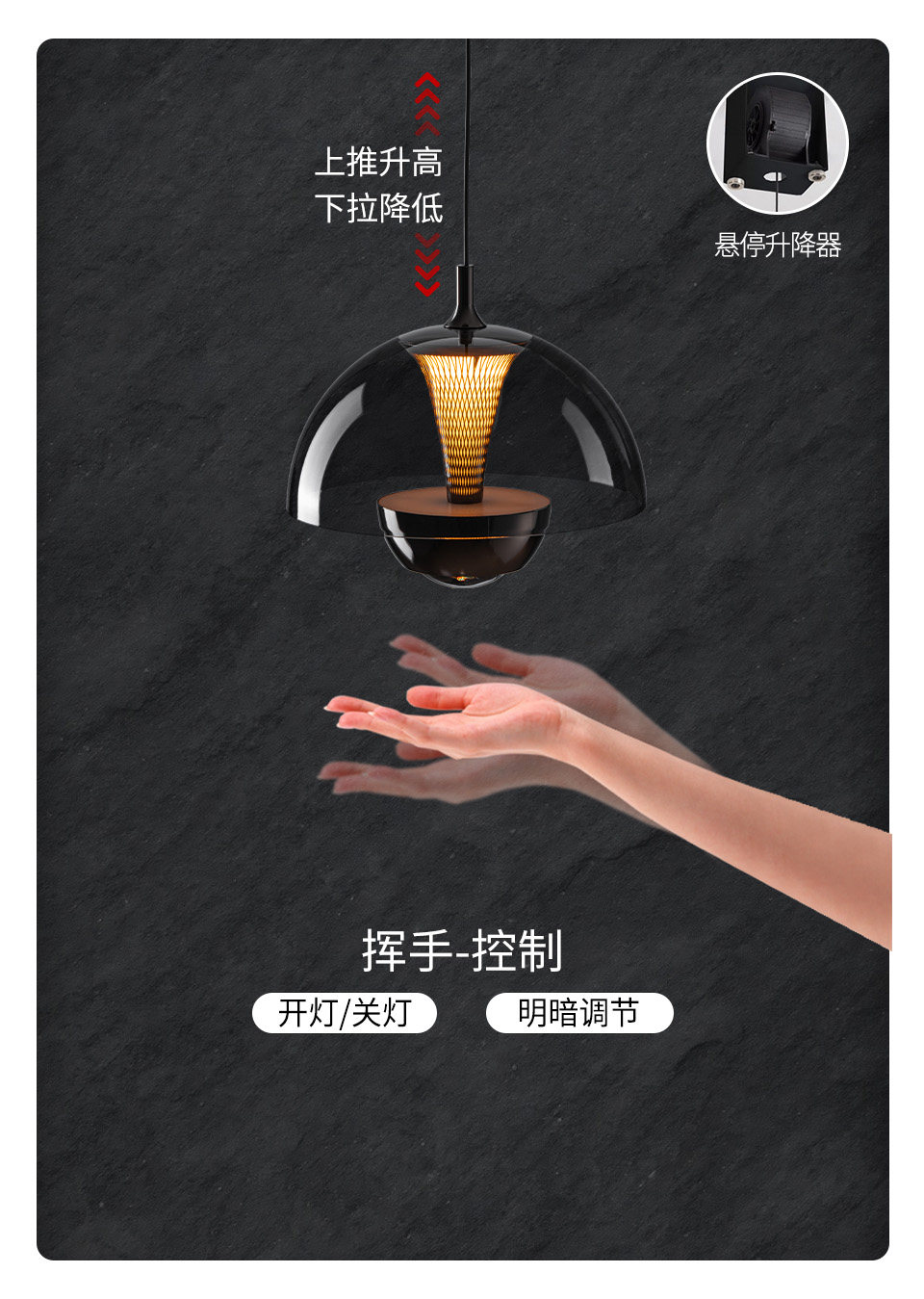升降手扫花苞床头吊灯意式极简轻奢感主卧室房间玄关吊线灯
