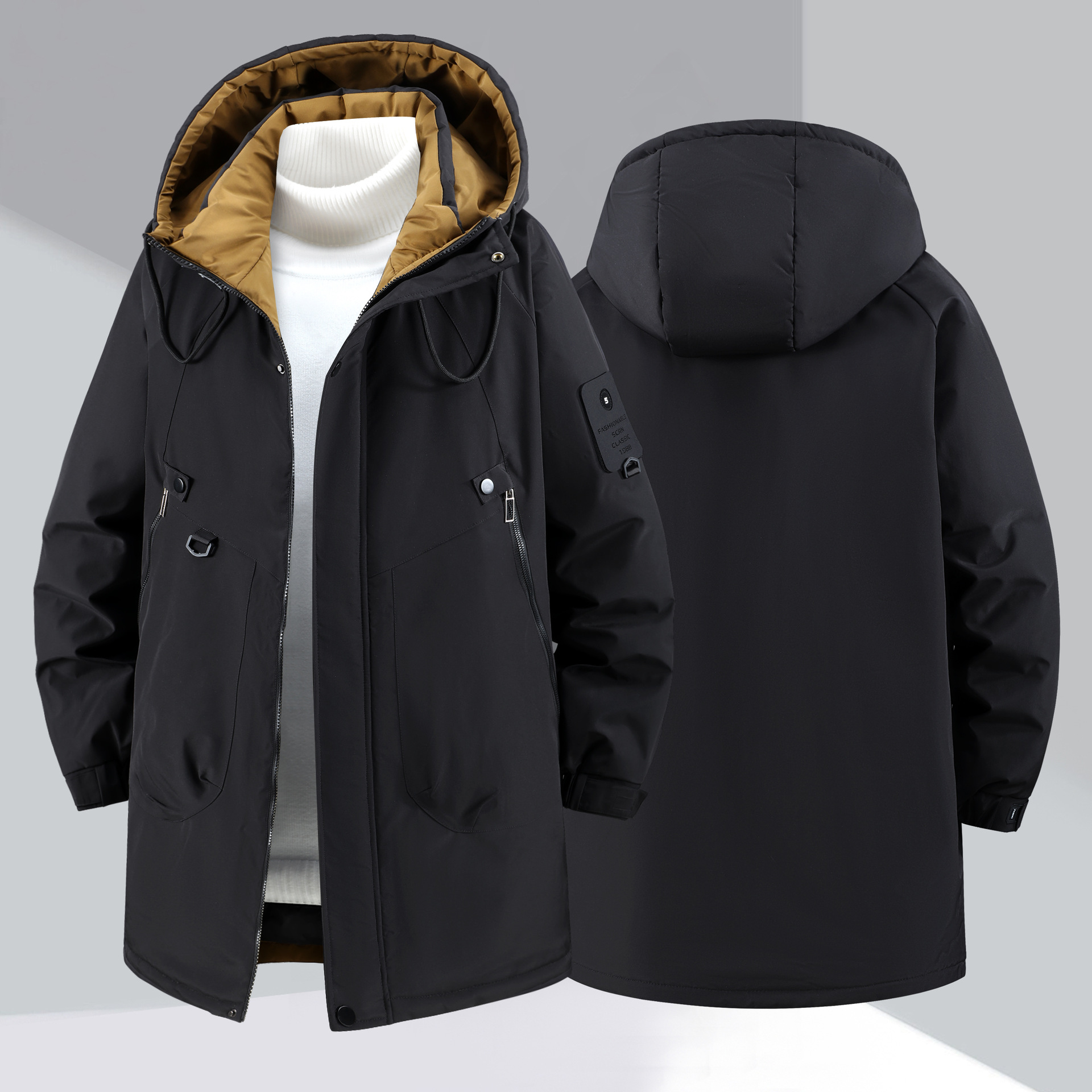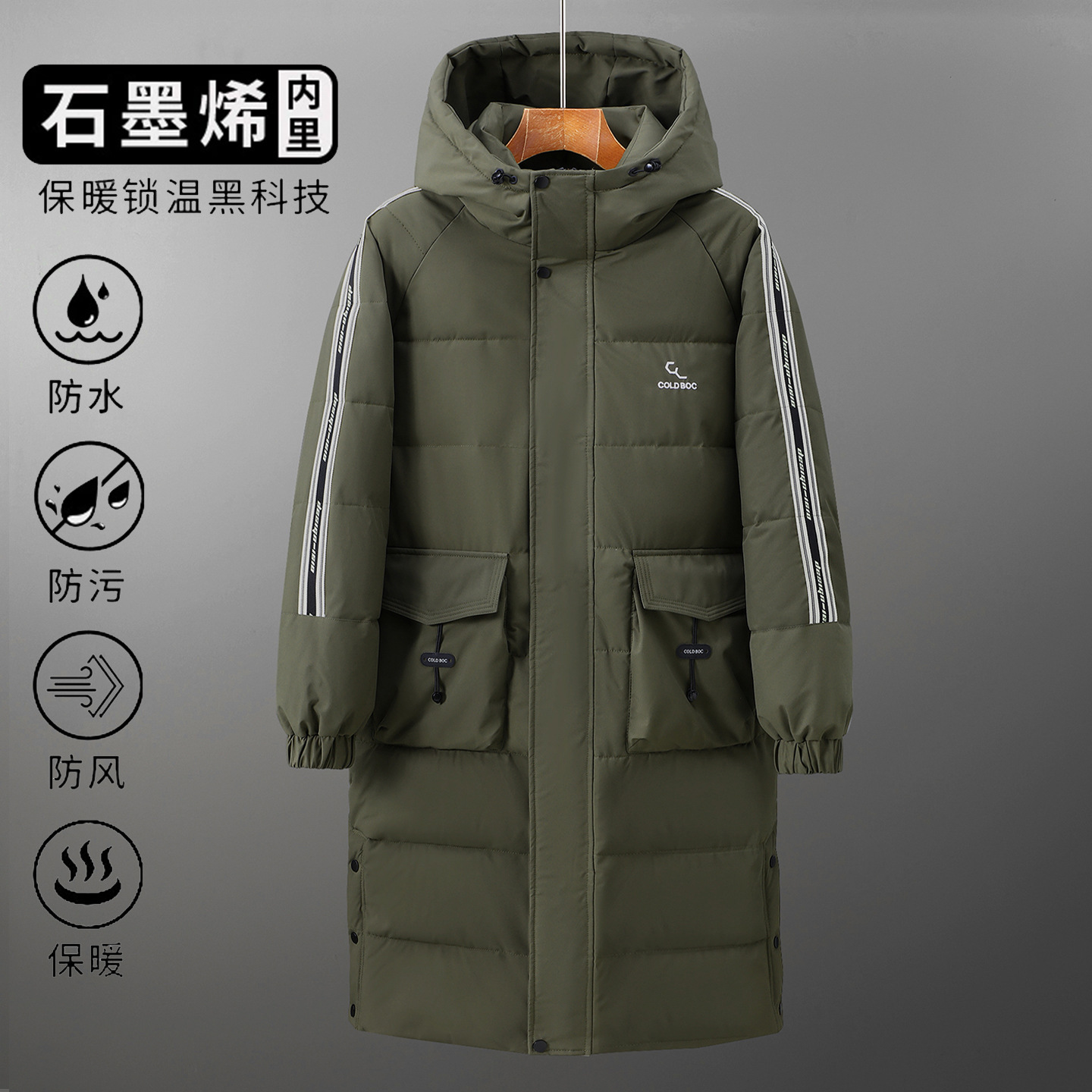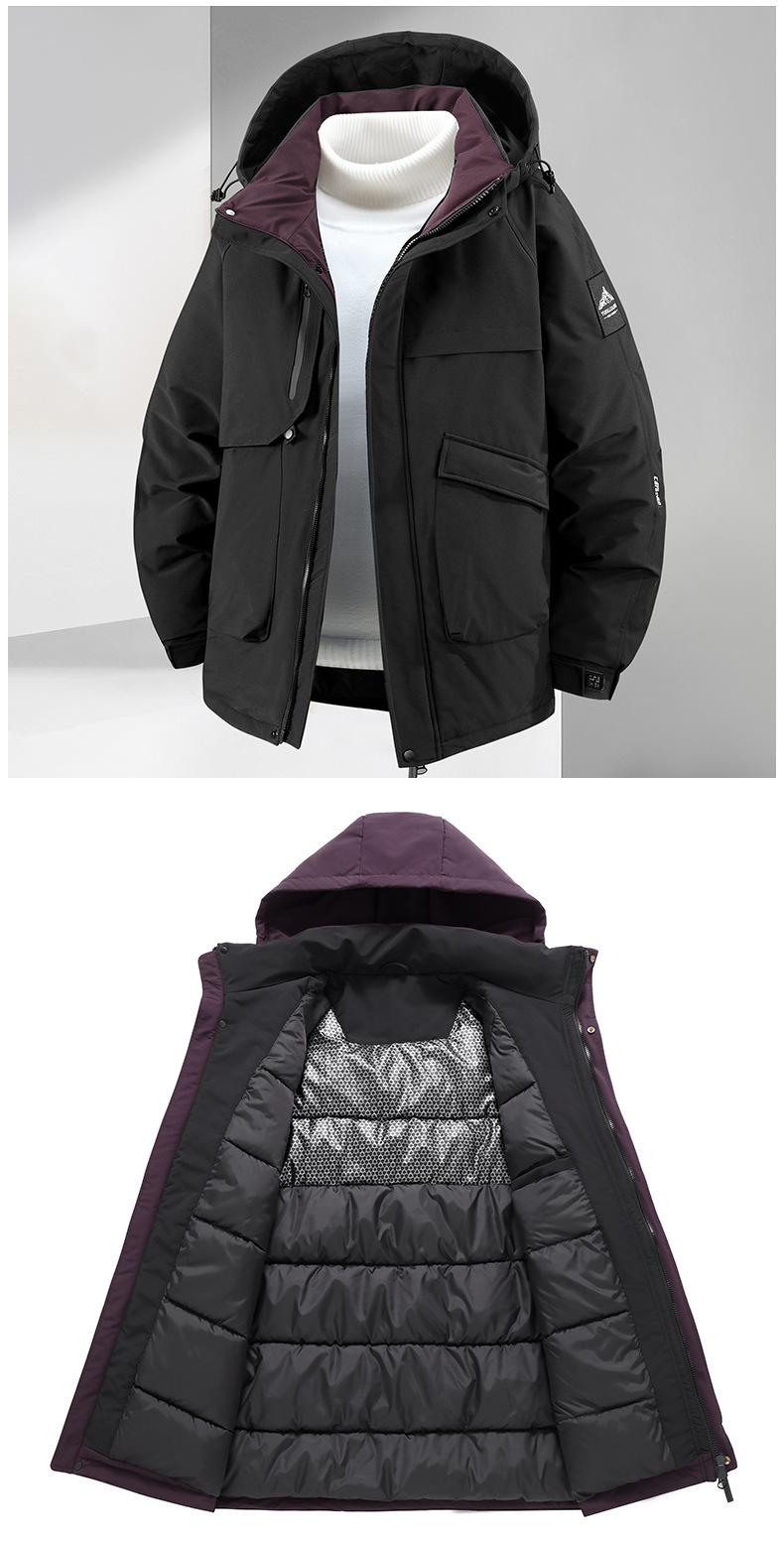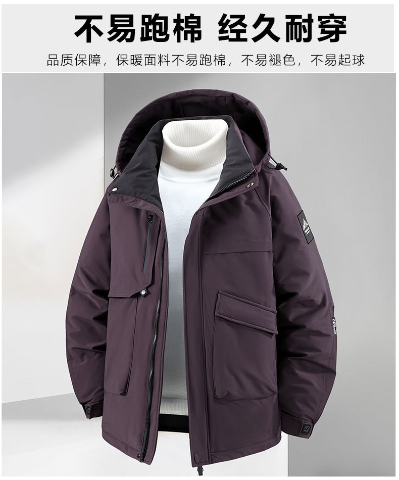 2025新加絨三防冬男性綿服の中の長さは帽子と肥料が厚くなっています。