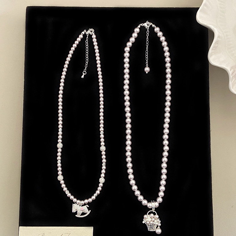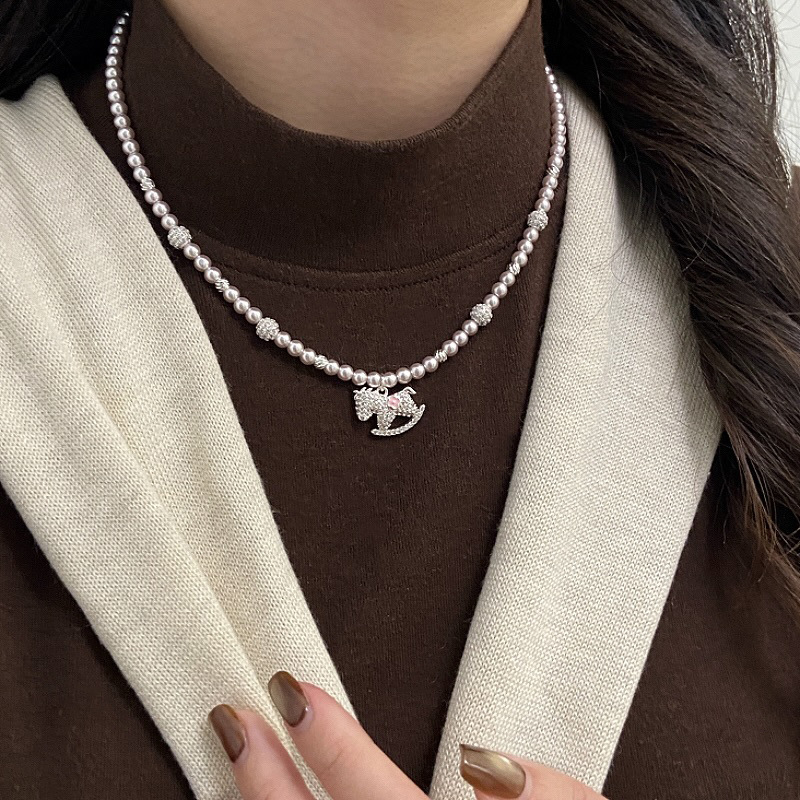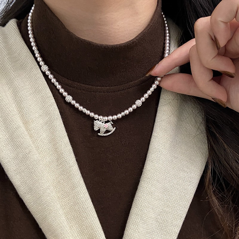 曼塔玫瑰施家珍珠满钻木马吊坠项链女设计感甜美精致时尚锁骨链