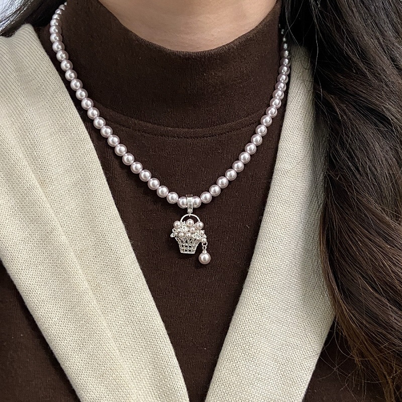 曼塔玫瑰施家珍珠花篮吊坠项链女满钻木马钻球串珠甜美锁骨链颈链