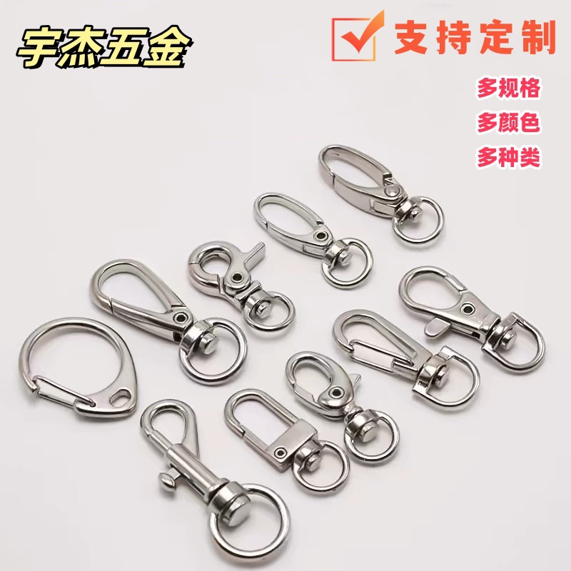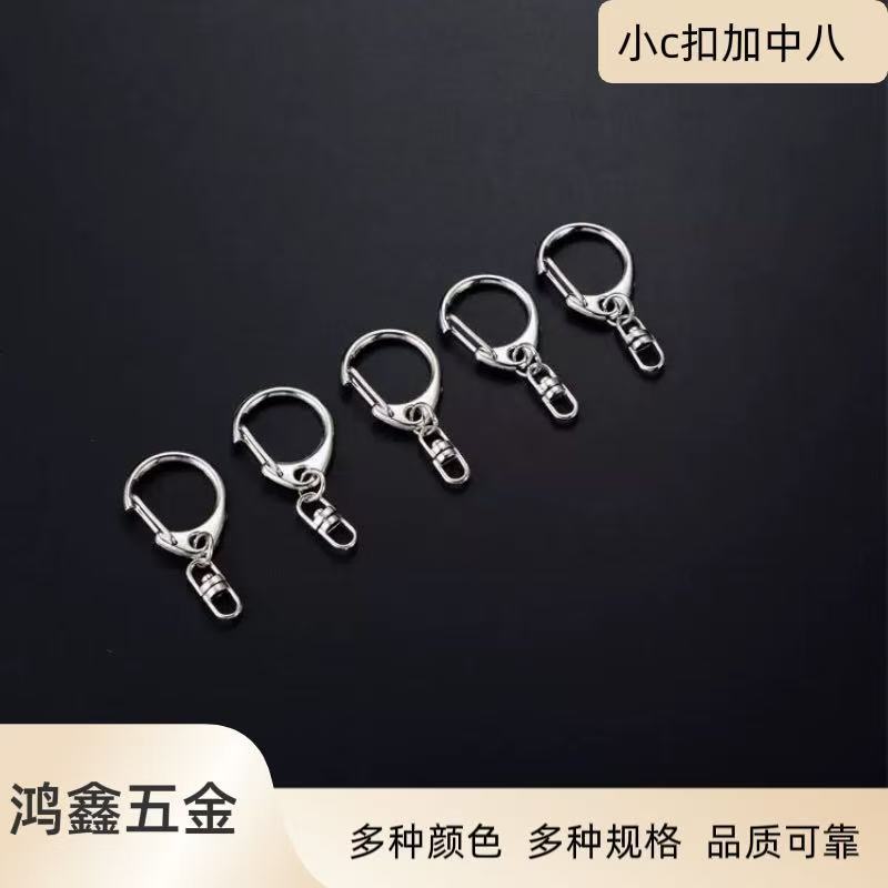 大小D扣8八字旋转挂扣钥匙圈链龙虾扣diy金属钥匙扣配件C扣带链条