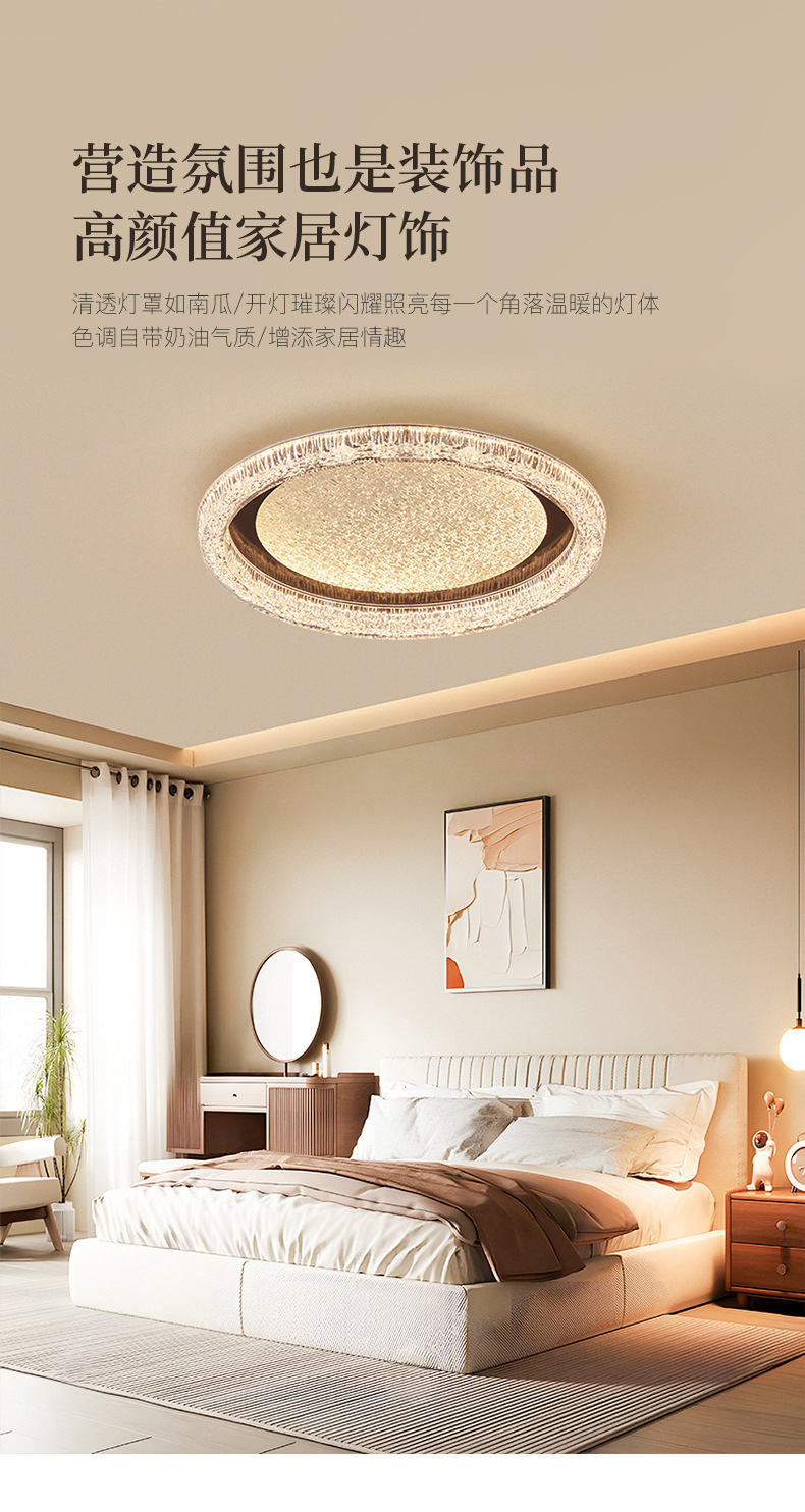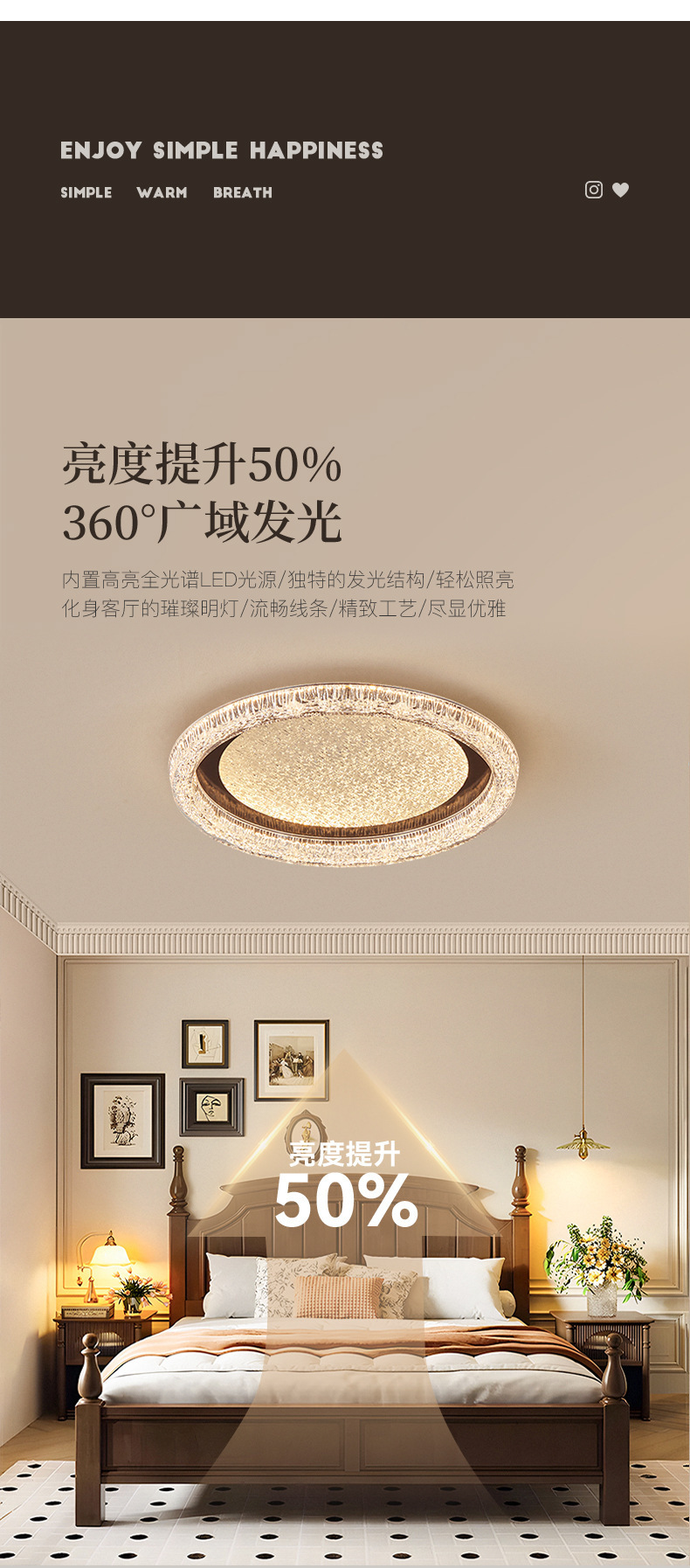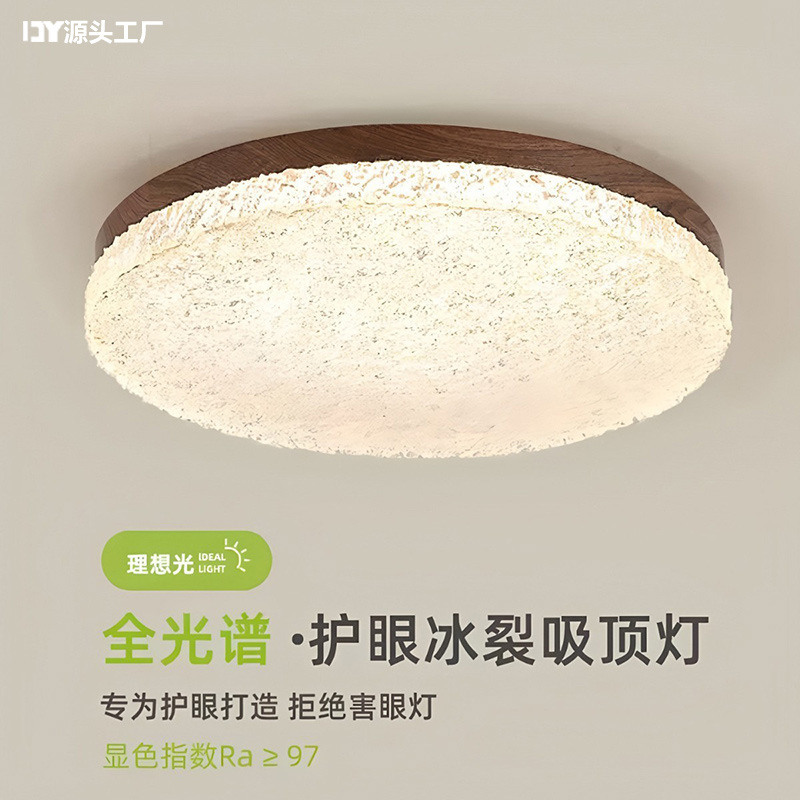 新款卧室灯意式极简护眼大气圆形客厅灯胡桃木中古风广东中山灯具