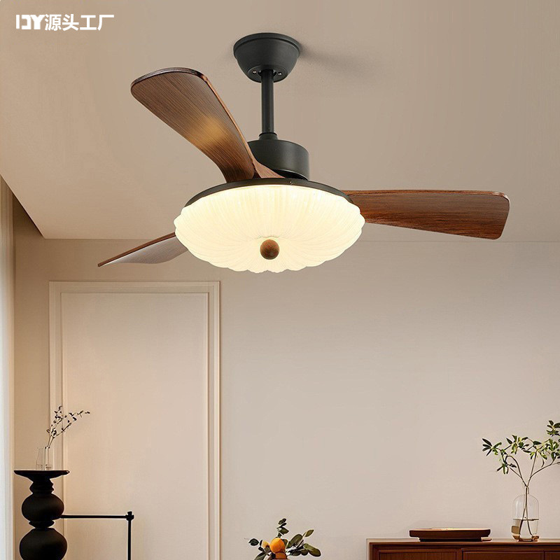 复古餐厅风扇灯宋代美学新款法式奶油风中古风扇灯客厅餐厅吊扇灯