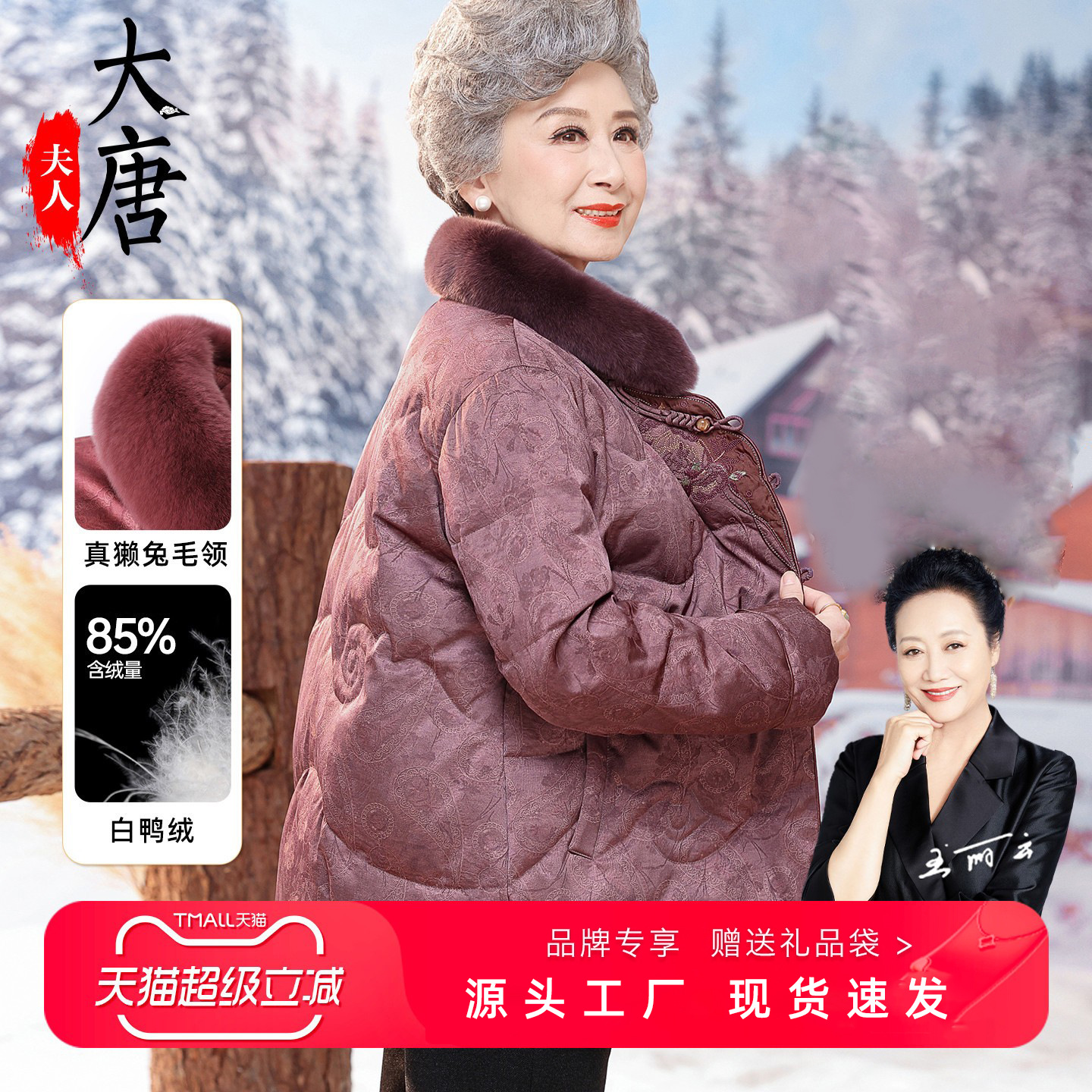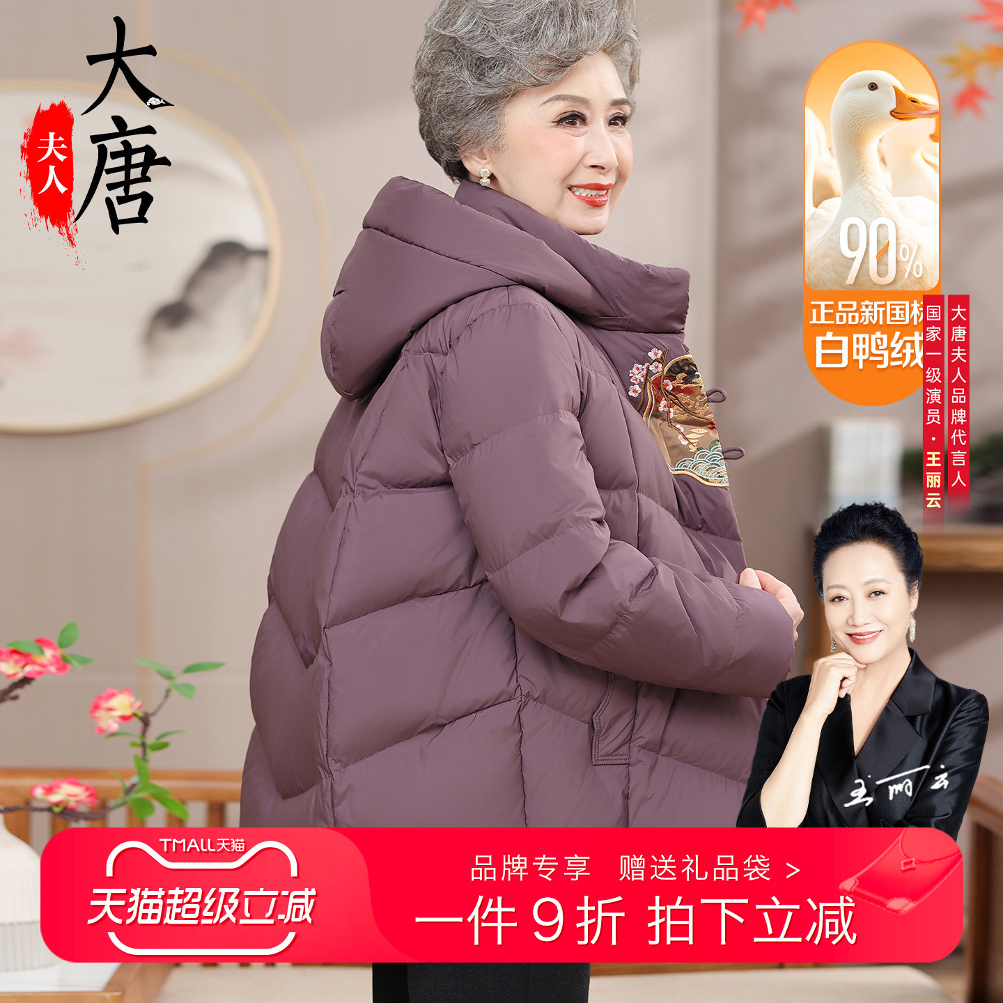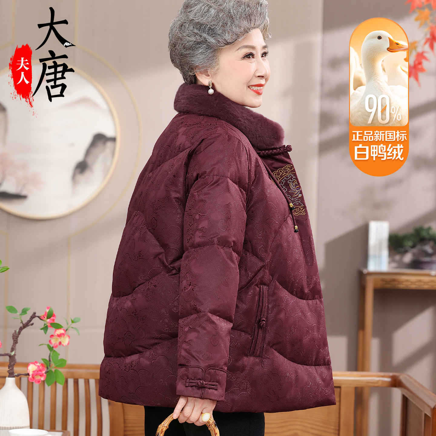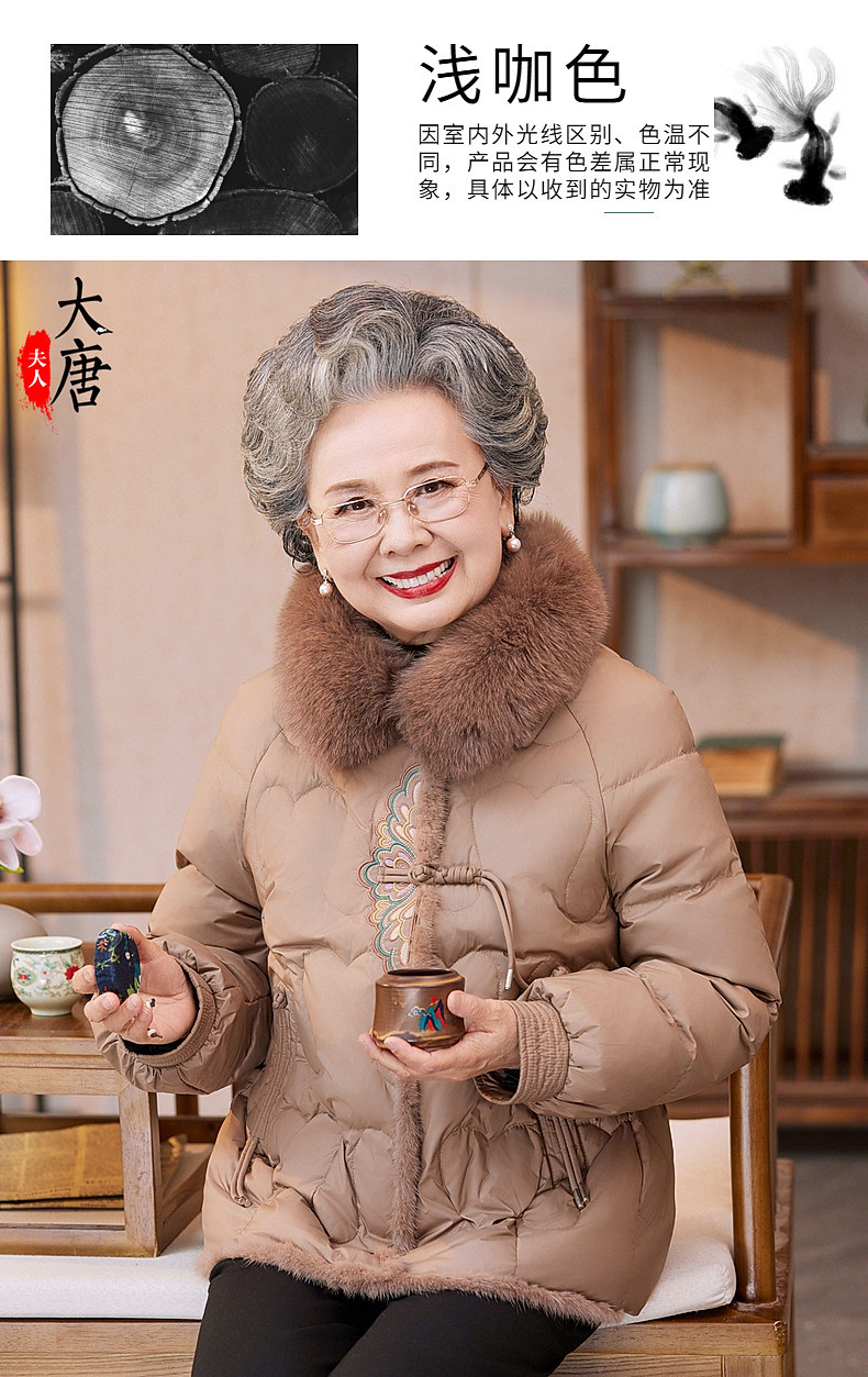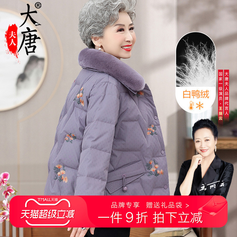 大唐夫人奶奶冬装羽绒服新中式老年人加绒加厚羽绒洋气外套奶奶款