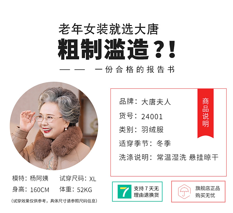 大唐夫人中老年人羽绒服女款外套妈妈奶奶冬装小个子短款老人毛领