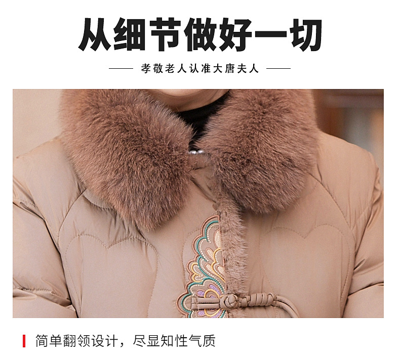 大唐夫人妈妈冬装羽绒服大毛领中老年女90白鸭绒洋气保暖绣花外套