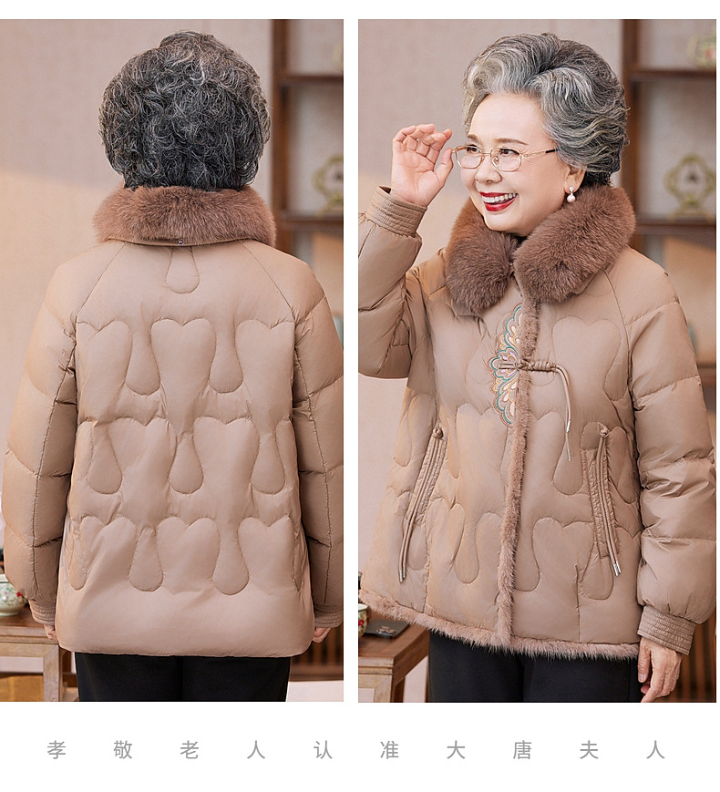 中老年人羽绒服女奶奶冬装加厚白鸭绒外套妈妈装中国风老太太衣服