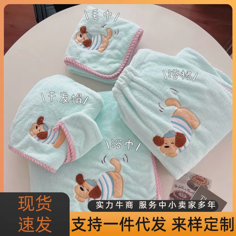 漫画の子犬のバスタオルのタオルの髪の帽子のバスのスカートは刺繍します。